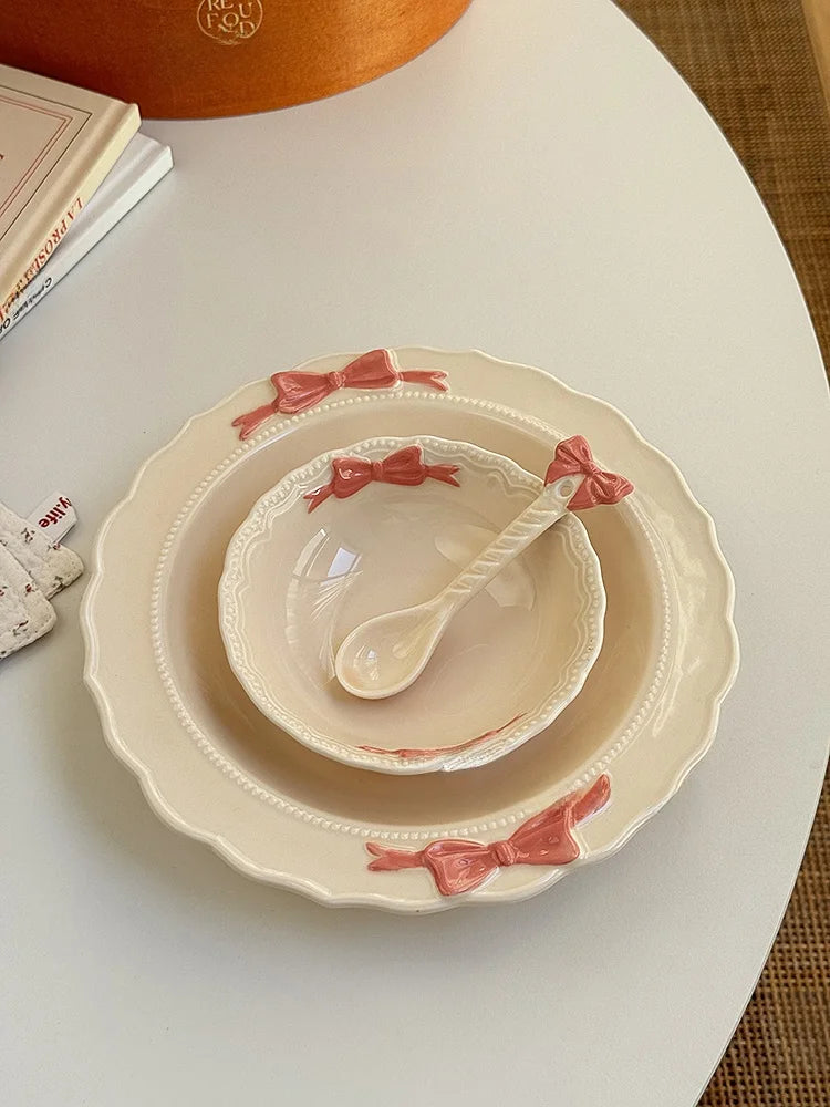 Anmuli Cerc Dert Plate with Underglaze Color Knot Bead Trimmed Multifunctional Di Korean Sle from Mainlan...