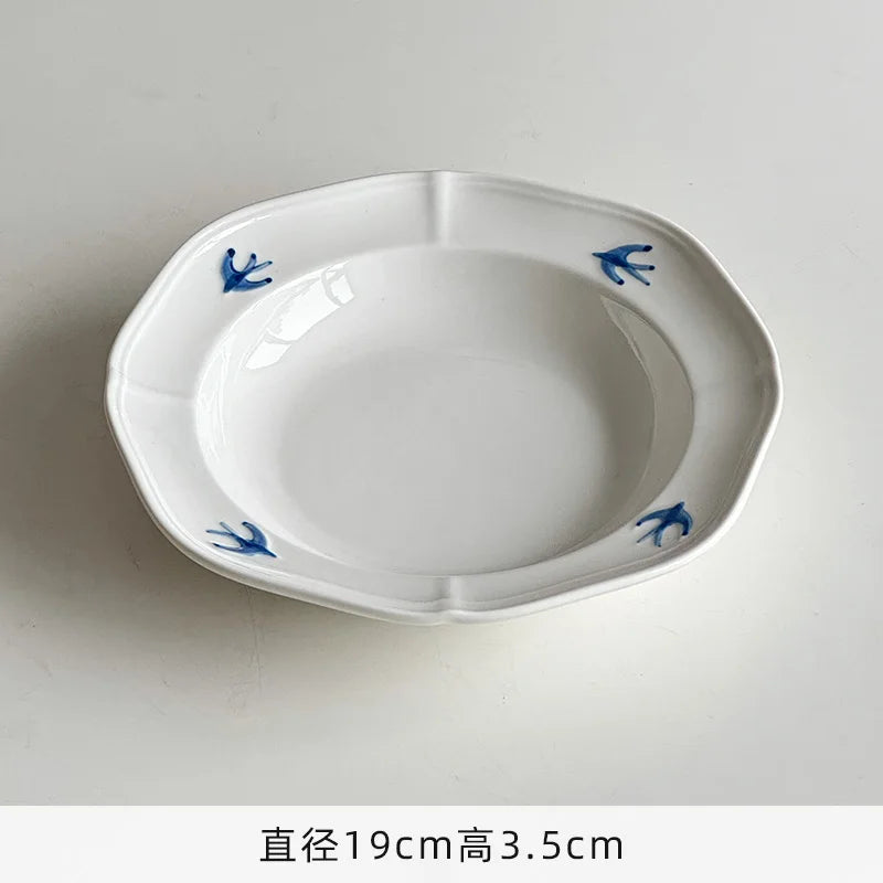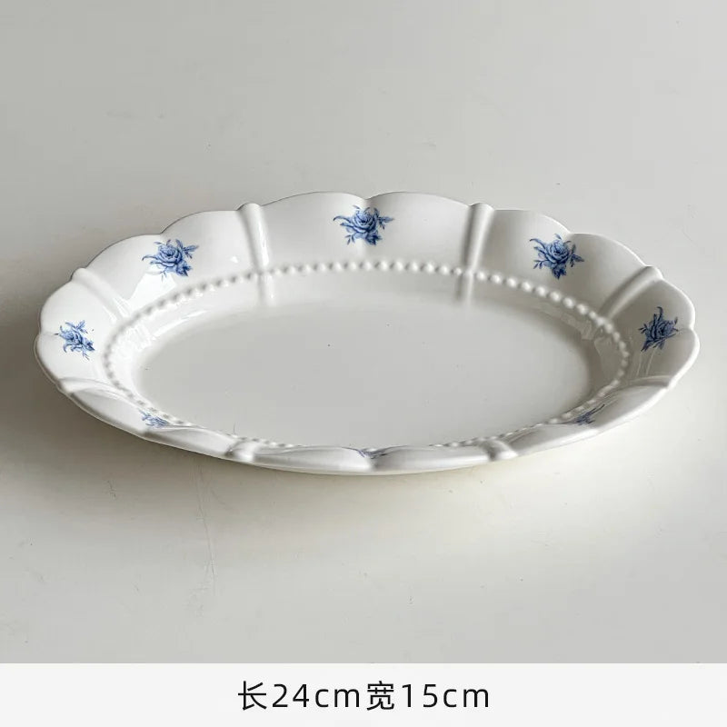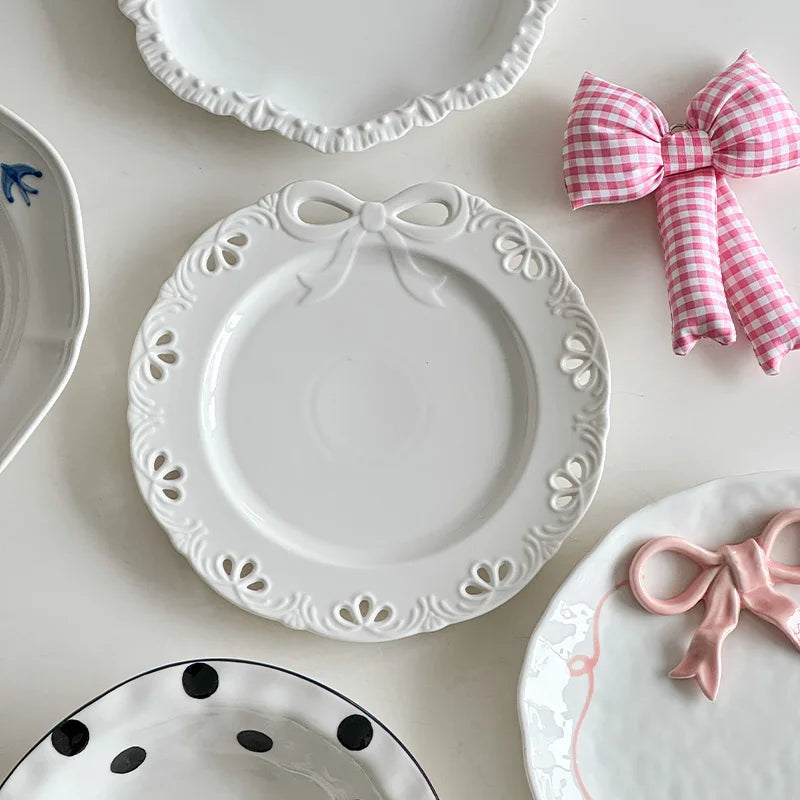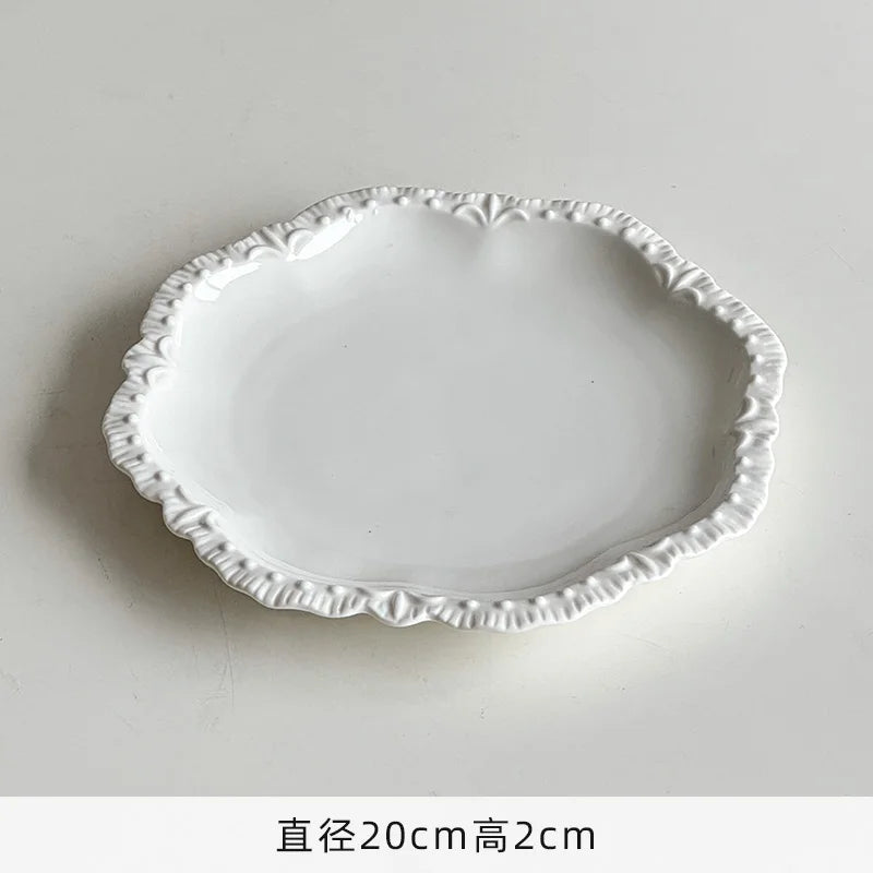 Cream Wind Plate Collection Embossed Lace Dessert Plate Italian Noodle Plate Salad Plate Cute and Beautiful Home Use