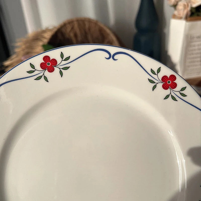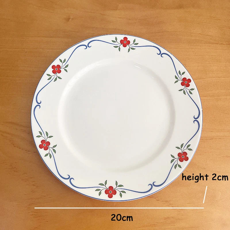 Creative Floral Plate Household Circular Serving Plates High-end Simple Fruit Dessert Dish Nordic Style White Ceramic Tableware