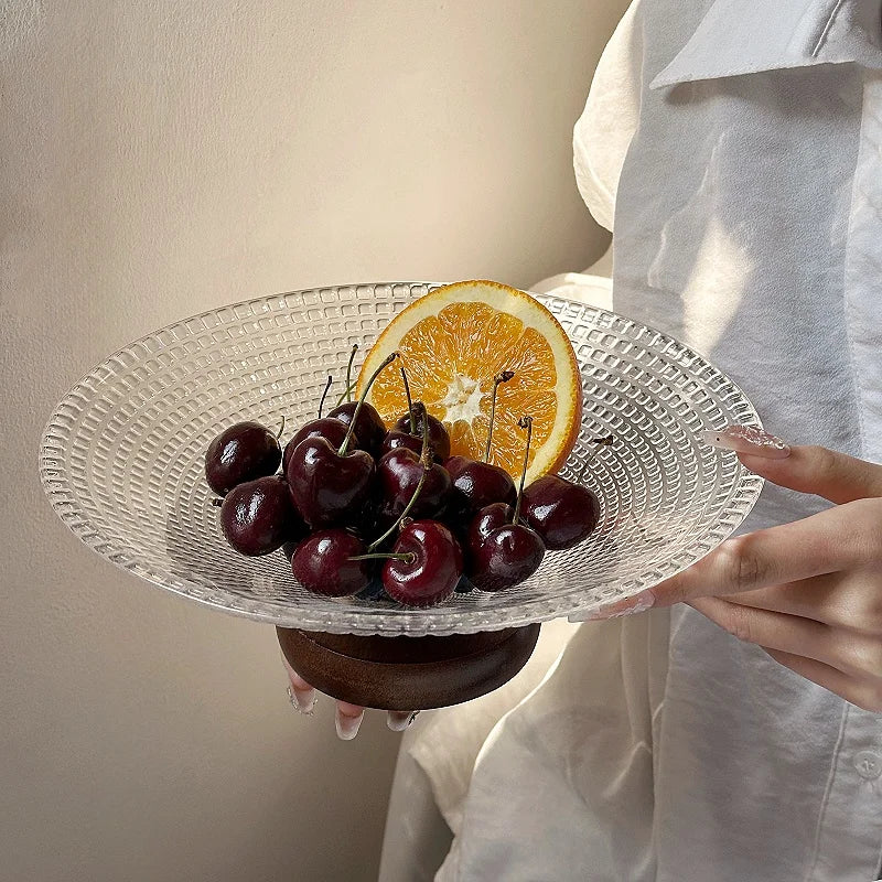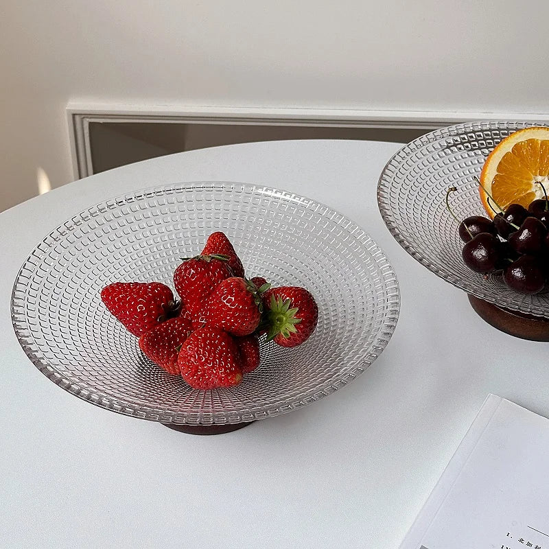 Crystal Glass Dried Fruit Plate High-end Casual Afternoon Tea Dessert Tray Household Living Room Candy Glasses Wood Base Plates