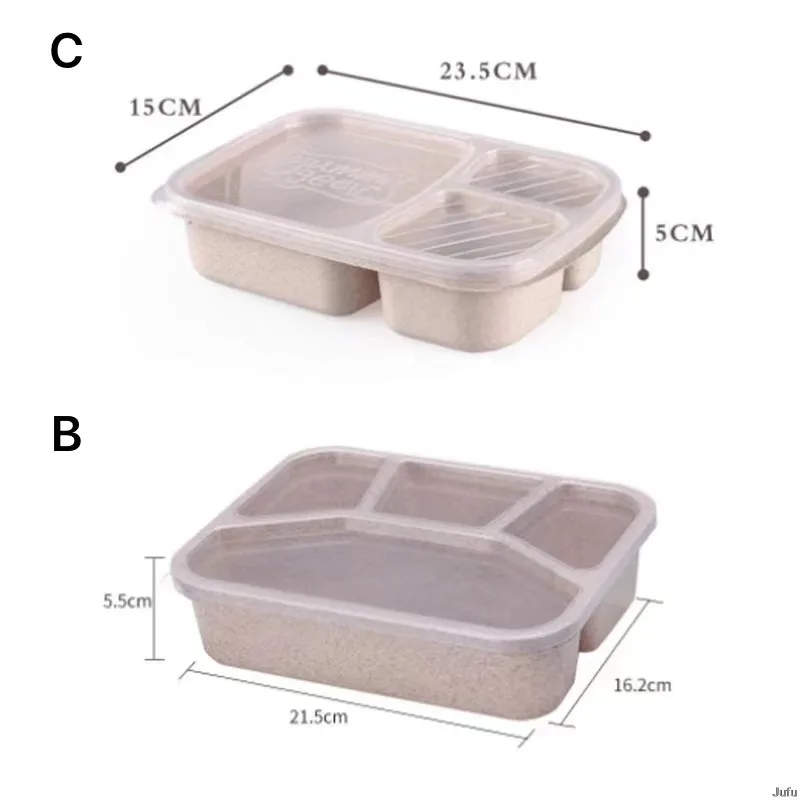 Cute Lunch Box For Kids Food Container 3 Grid Storage Boxs Wheat Child Bento Snack Box Straw Material Leak-proof Japanese Style