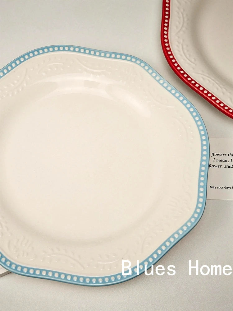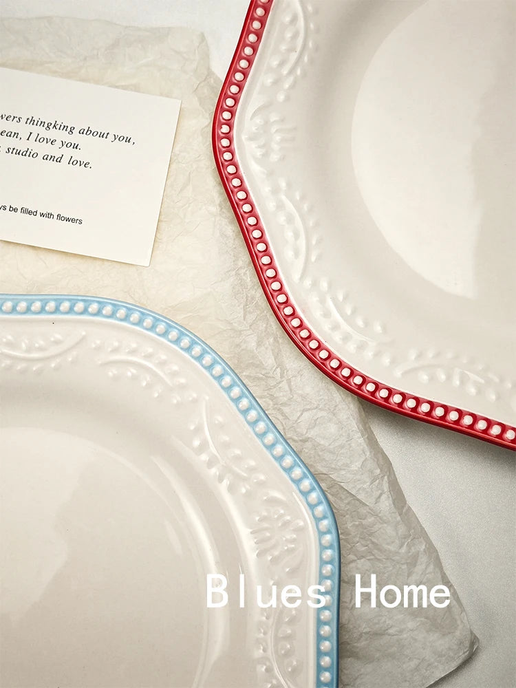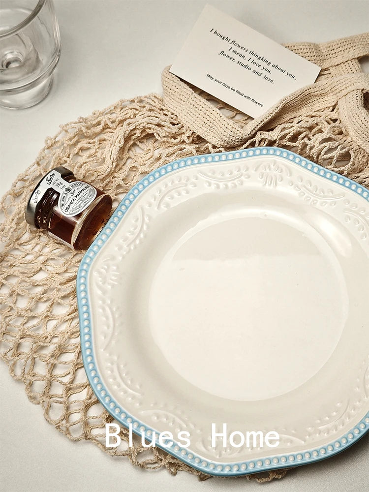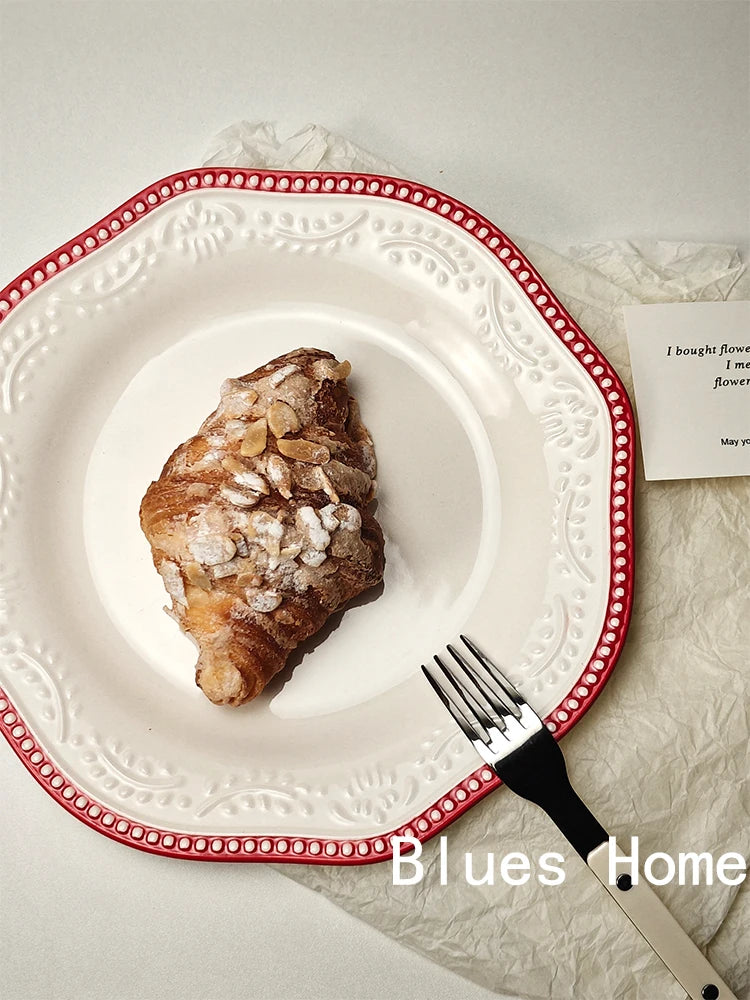 French Dessert Plates Exquisite Household Breakfast Dish Retro Coffee Shop Ceramic Tableware Chic Relief Western Cuisine Plate