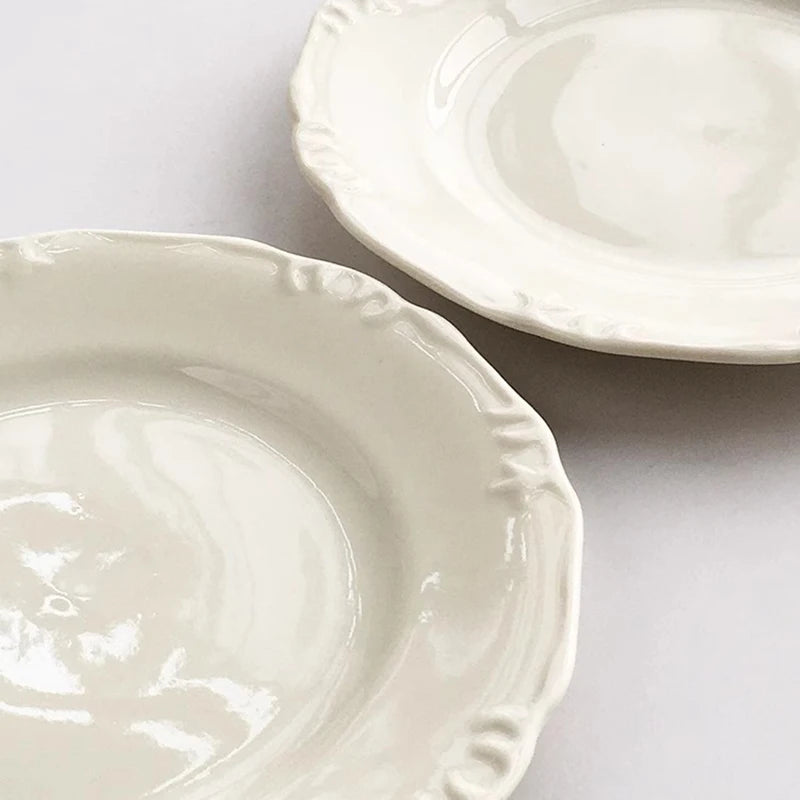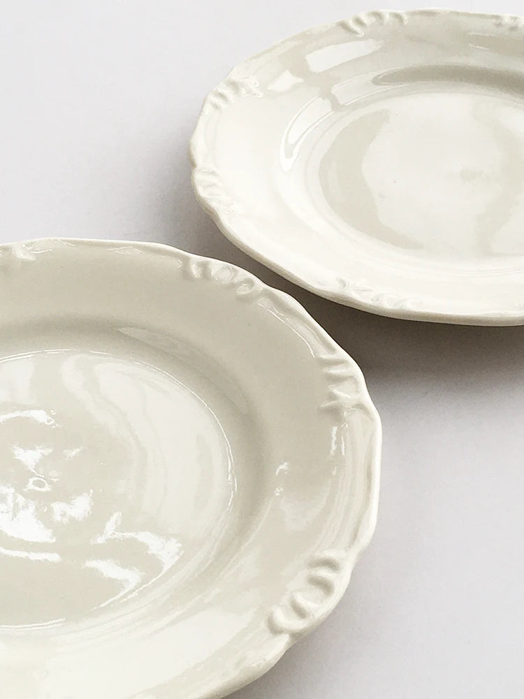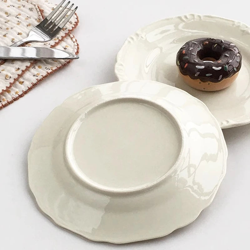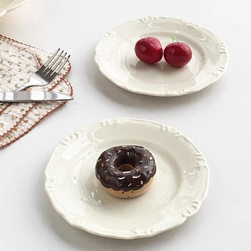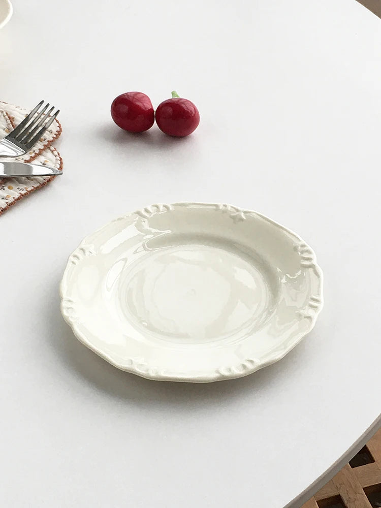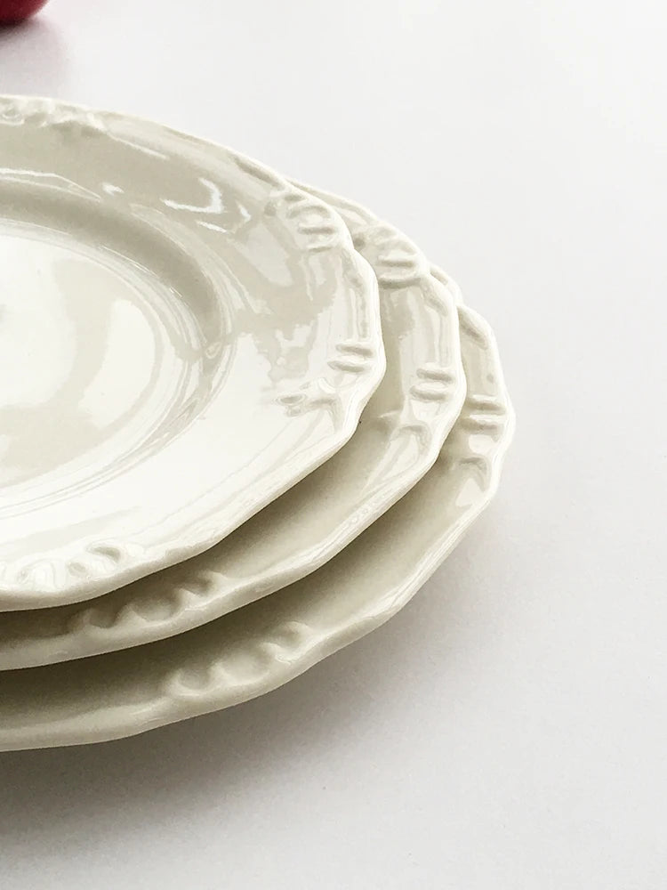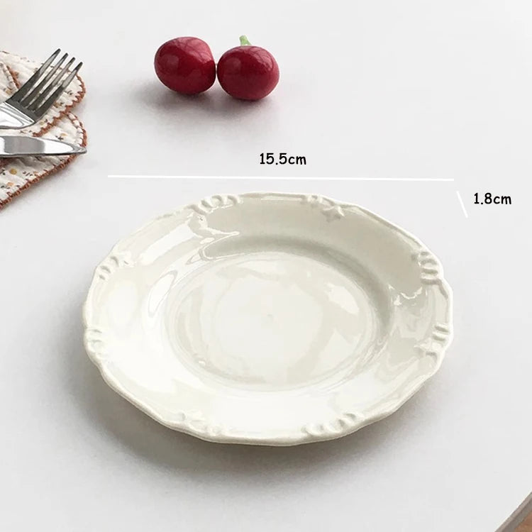 French Relief Plate Fashion White Round Ceramic Plates 2025 New Home Kitchen Serving Dish Afternoon Tea Dessert Cake Tableware