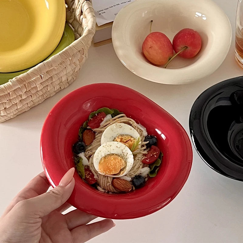 Ins Ceramic Saucer Korean Style Dessert Yogurt Oats Bowl Cream Color Fruit Salad Container Food Display Plate Kitchen Utensils
