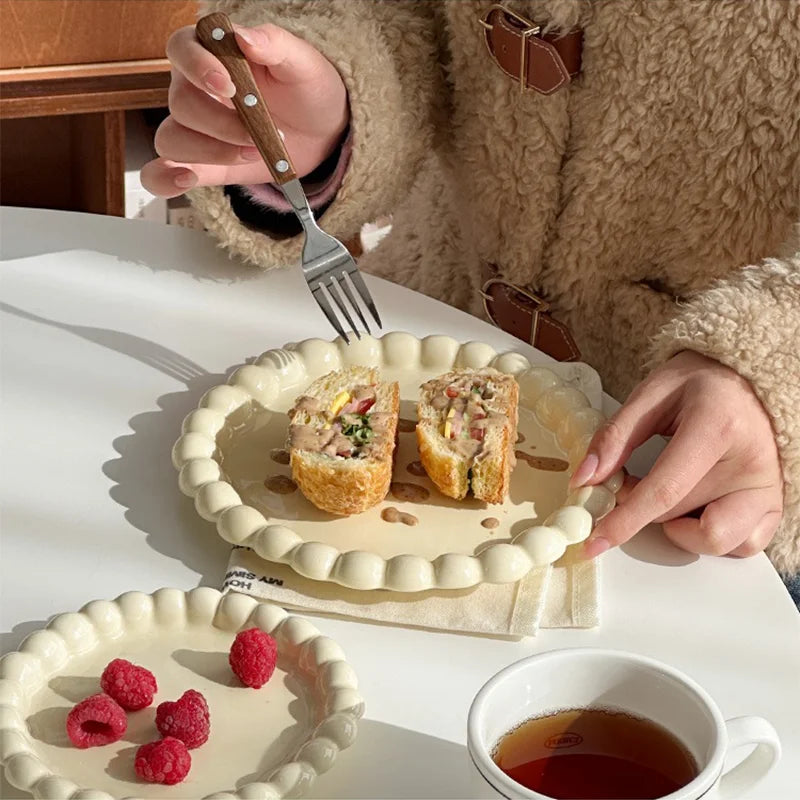 Ins Style Beaded Dessert Plate French Western Food Plate Ceramic Breakfast Plate Ornaments Poses Ceramic Dishes