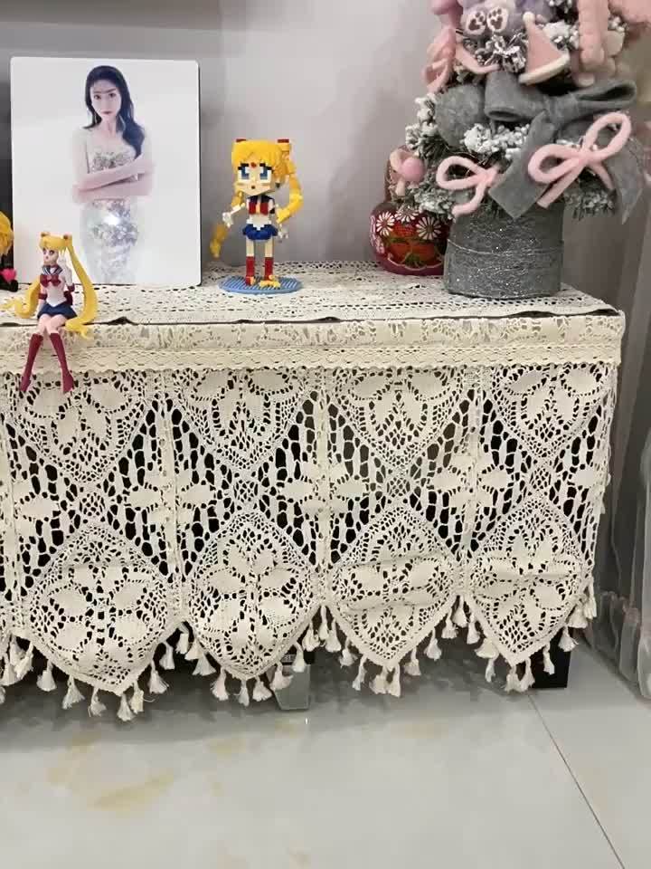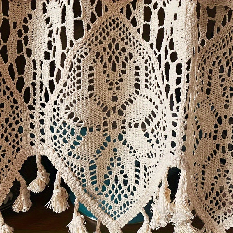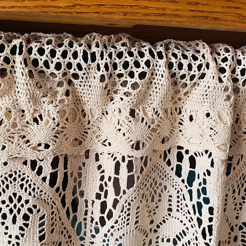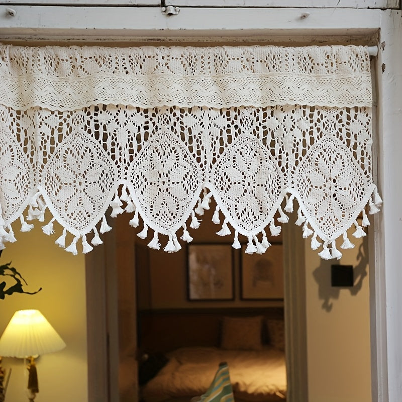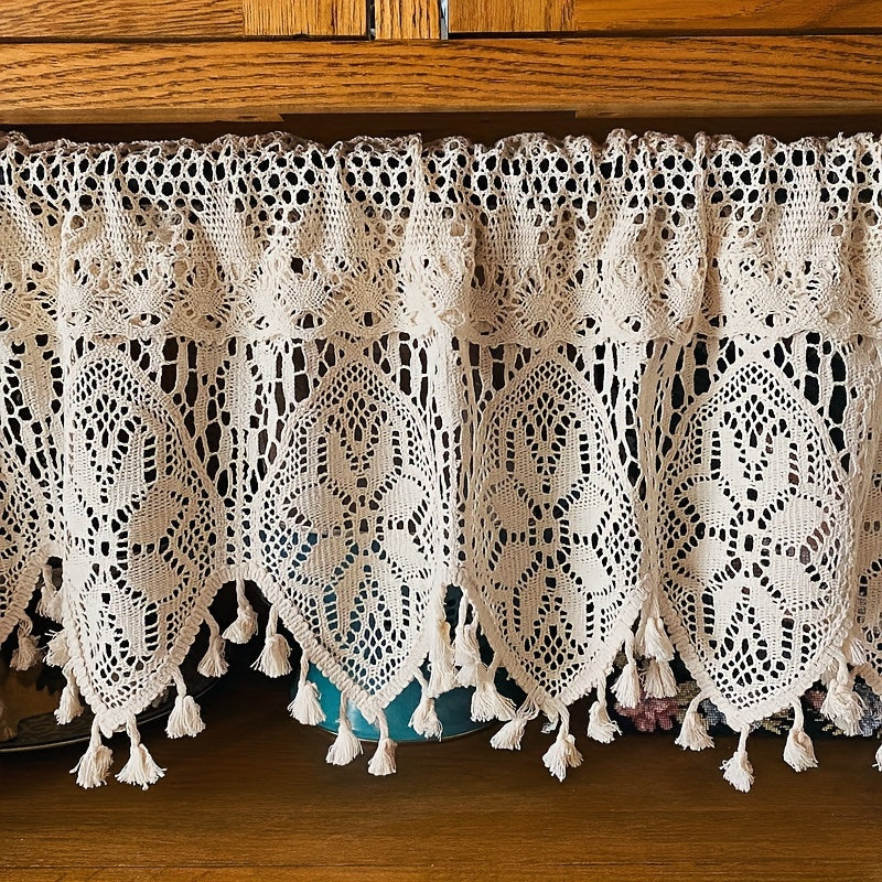 Lightweight Linen Valance with Crochet Lace & Tassels - Handcrafted Beige Rod Pocket Cafe Drapery - Kitchen, Living Room, Bedroom Voile Home Decor