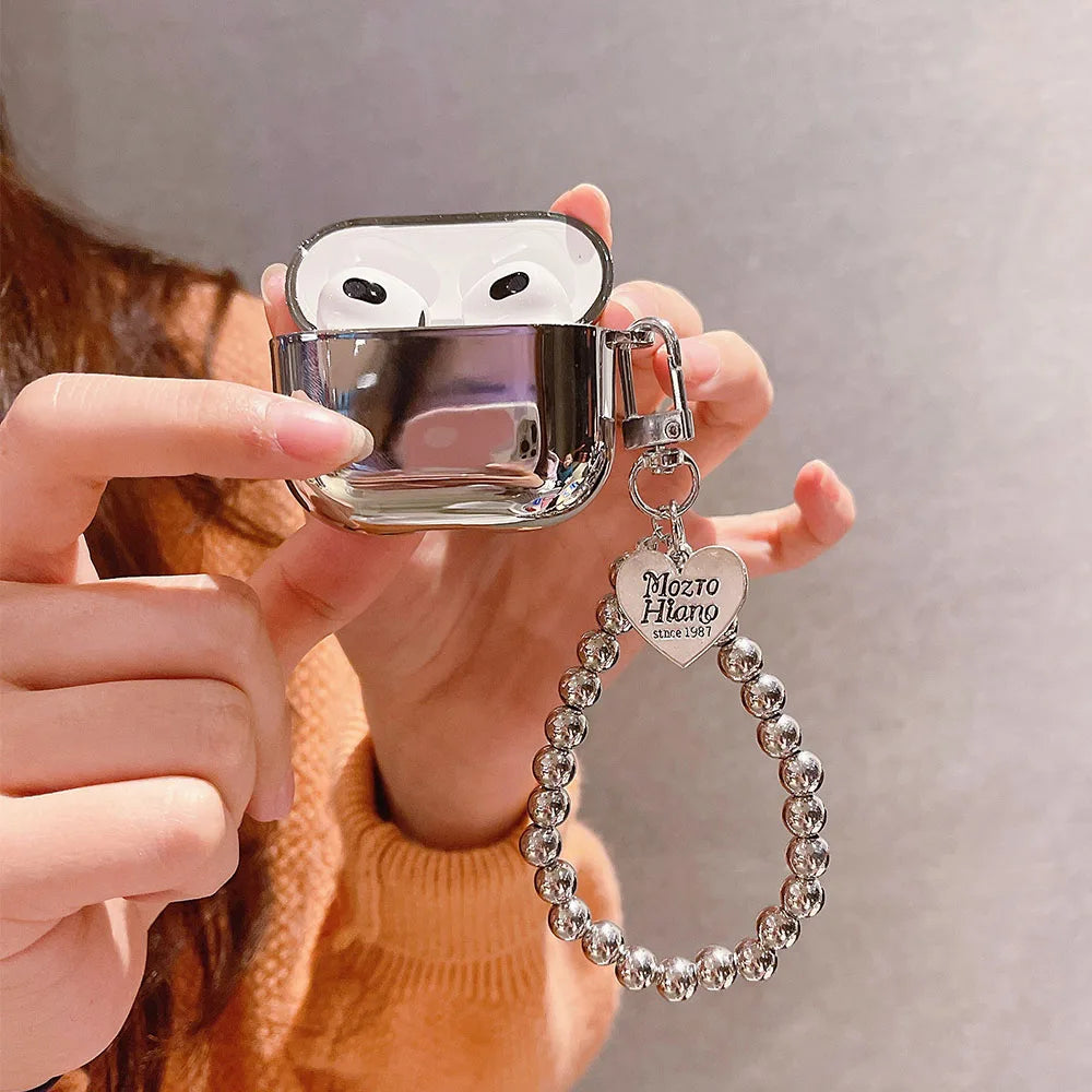 Luxury Electroplated Silver Bead Chain Bracelet Case For Apple AirPods 1 2 Pro 3 Headset Charging Box Earphone Protection Cover
