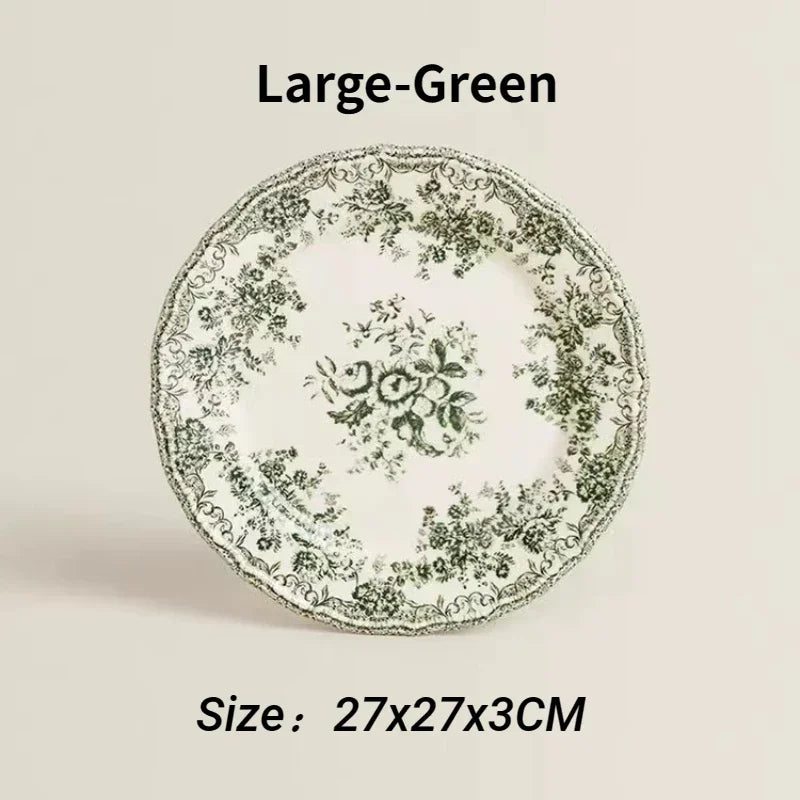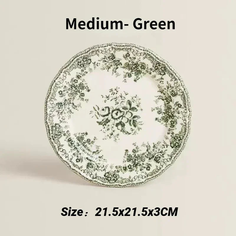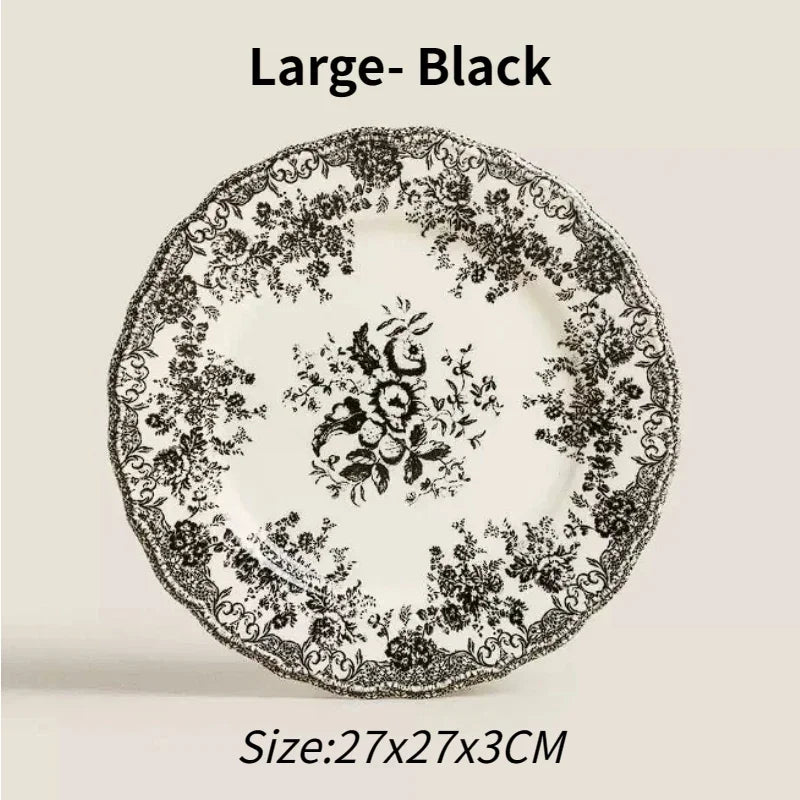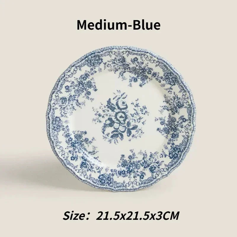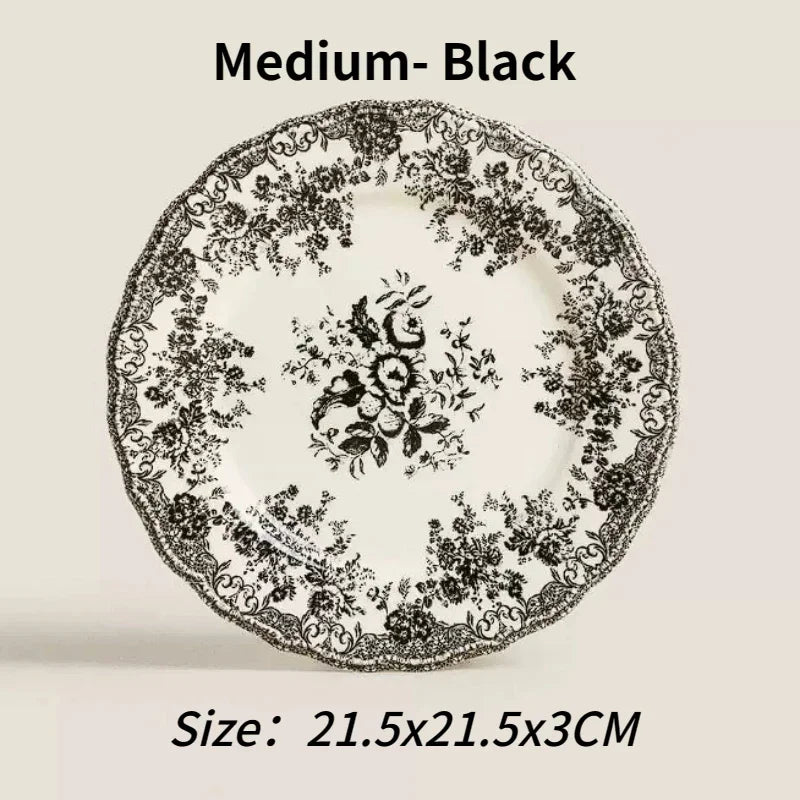 Nordic Flower Pattern Disc Dinner Plate Retro Ceramic Shallow Plate Dessert Plate Dinner Set Plates and Dishes