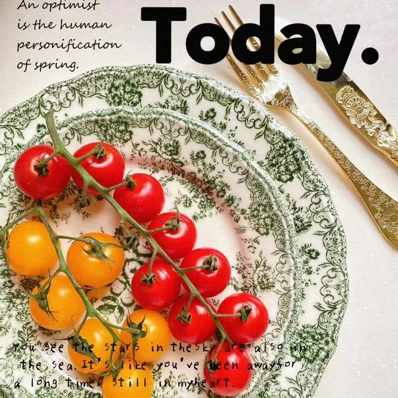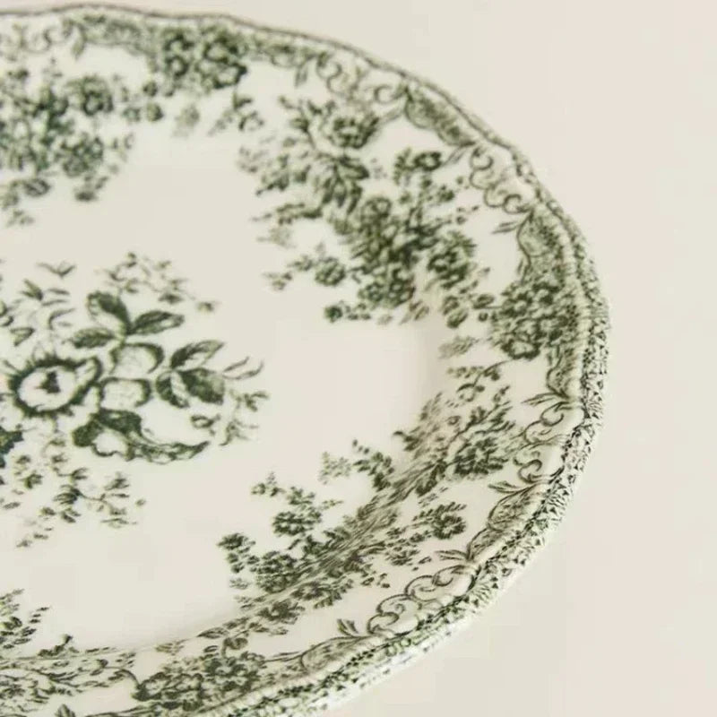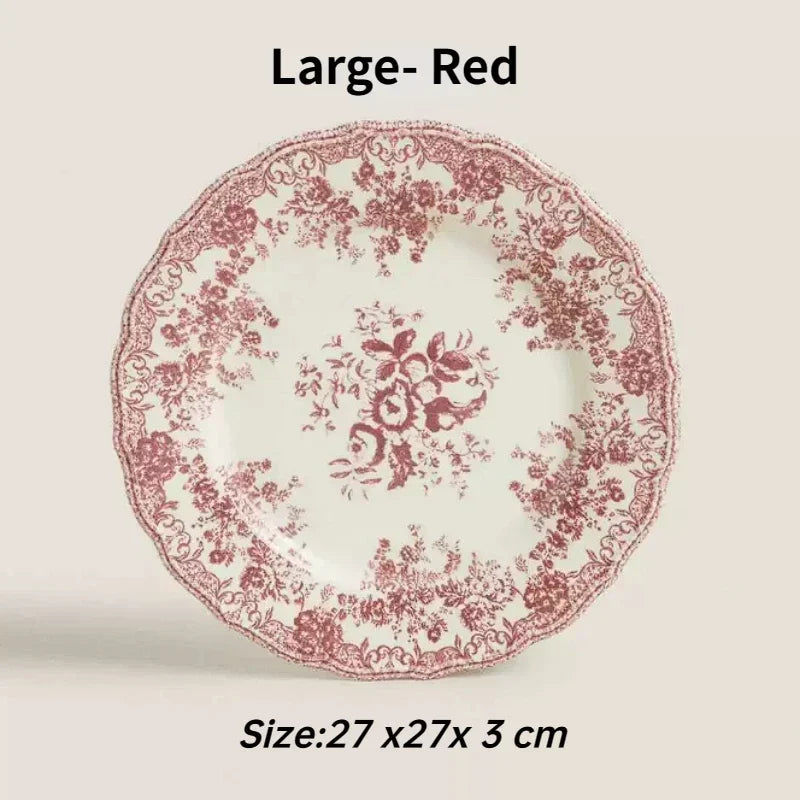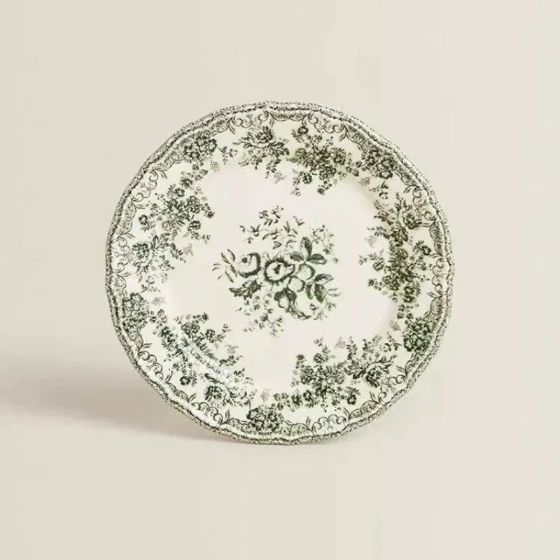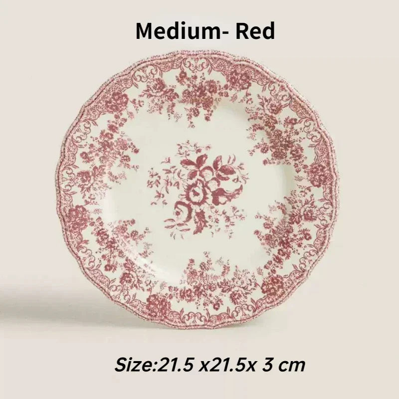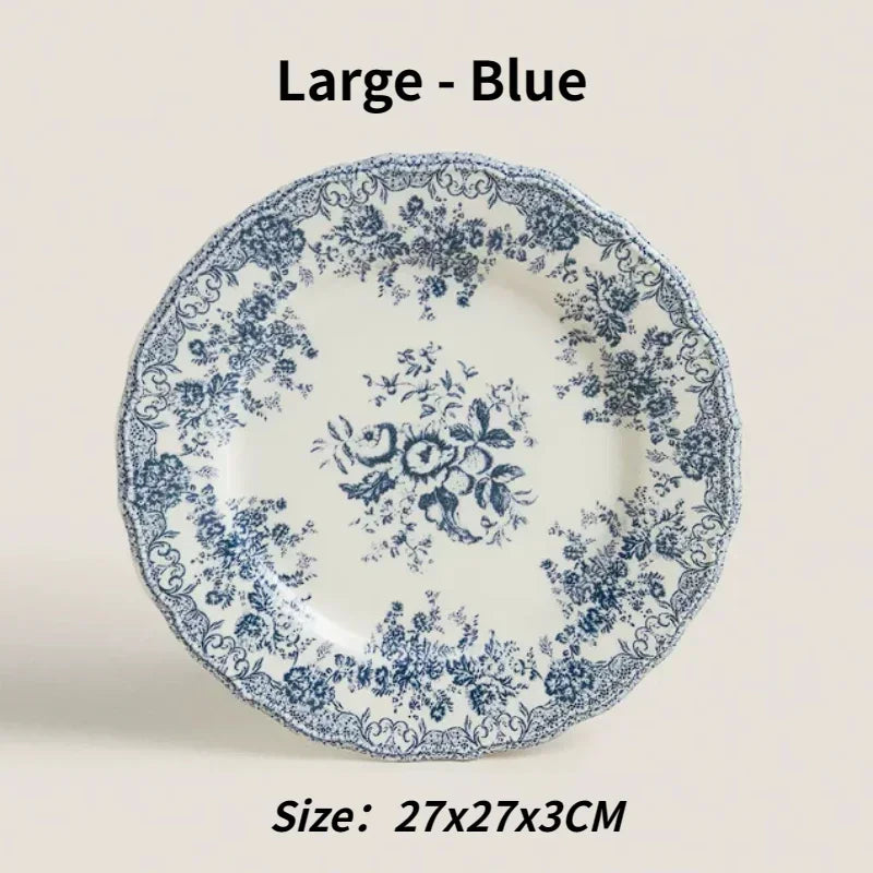 Nordic Flower Pattern Disc Dinner Plate Retro Ceramic Shallow Plate Dessert Plate Dinner Set Plates and Dishes