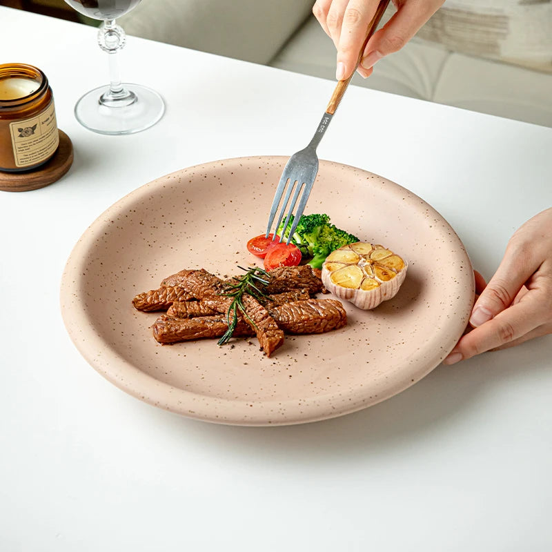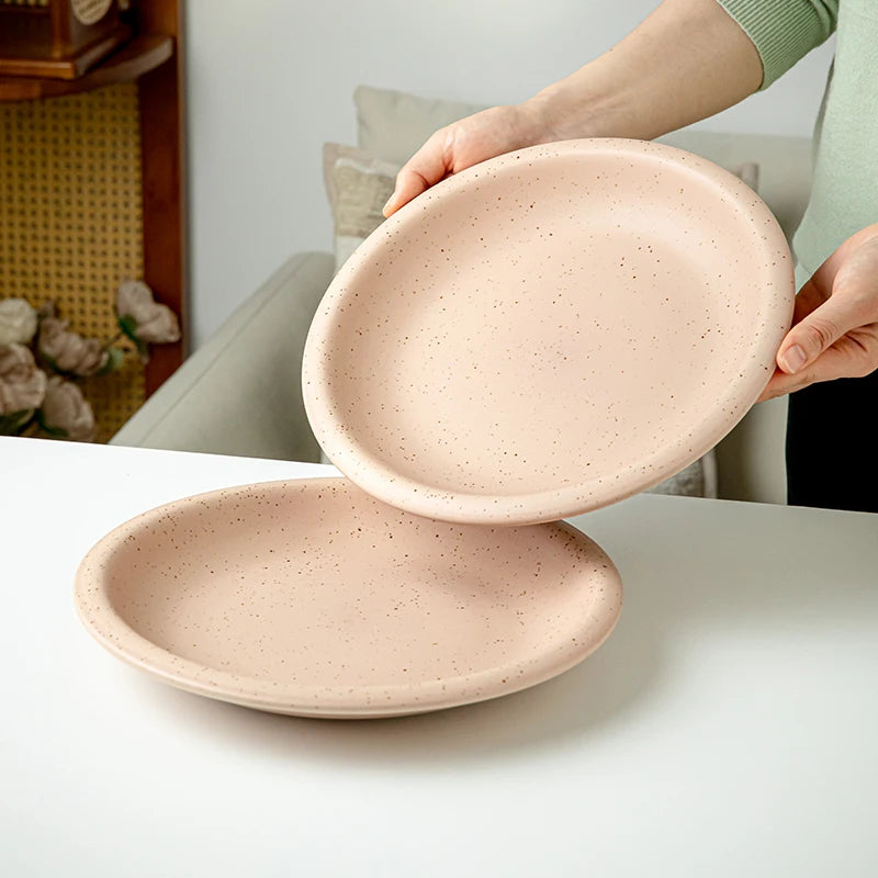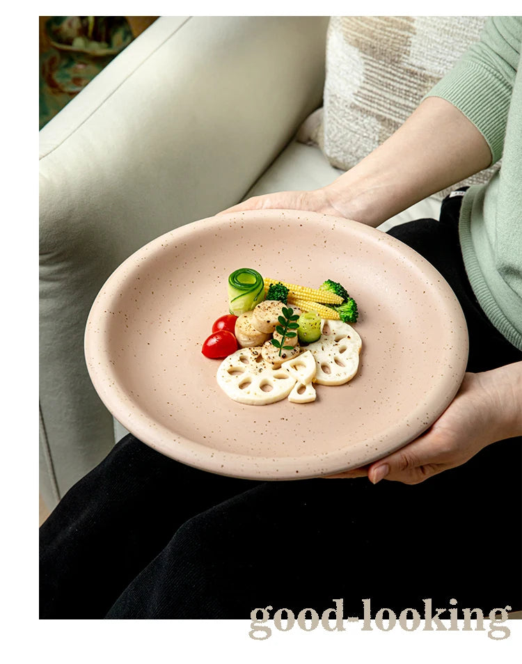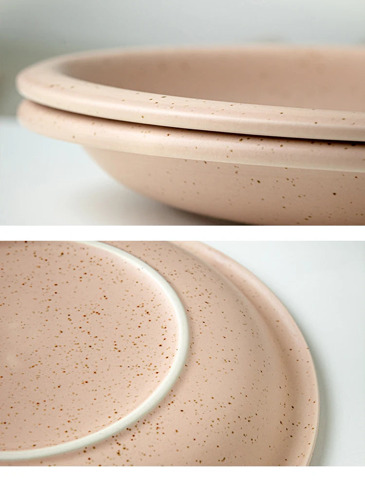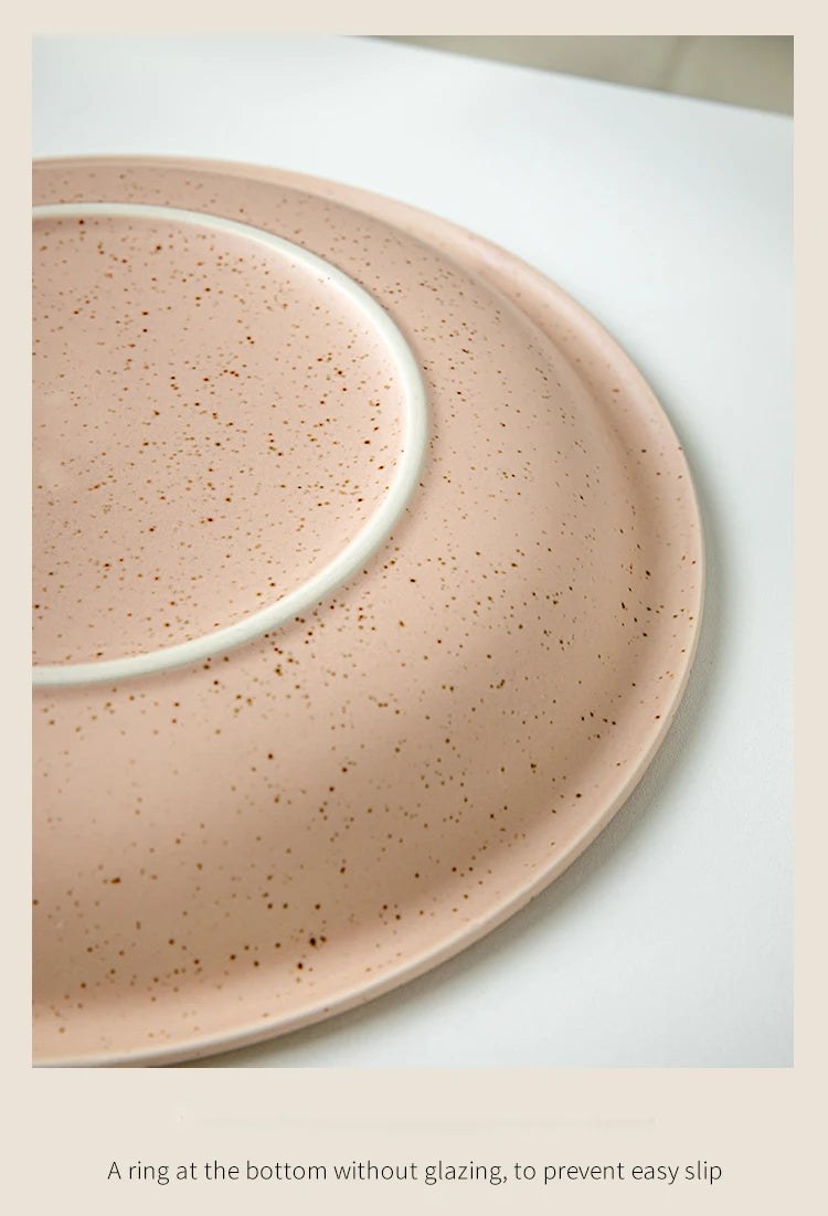 Sesame Dot Round Plate Nordic Style Ceramic Deep Dish High-end Household Serving Plates Fashion Versatile Beef Pasta Kitchenware