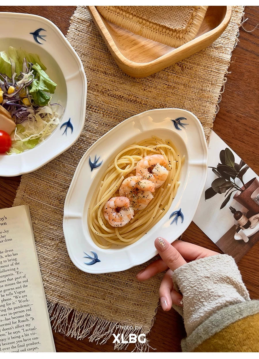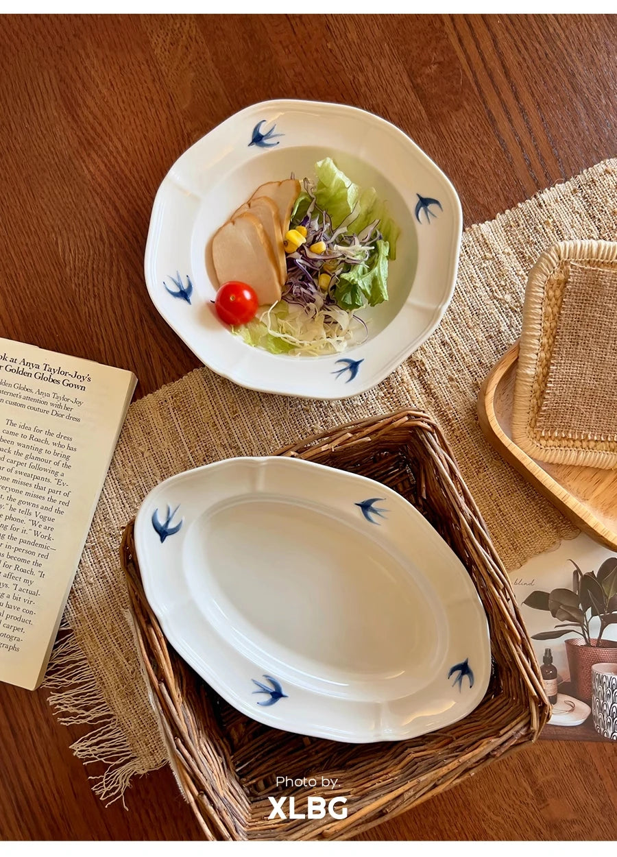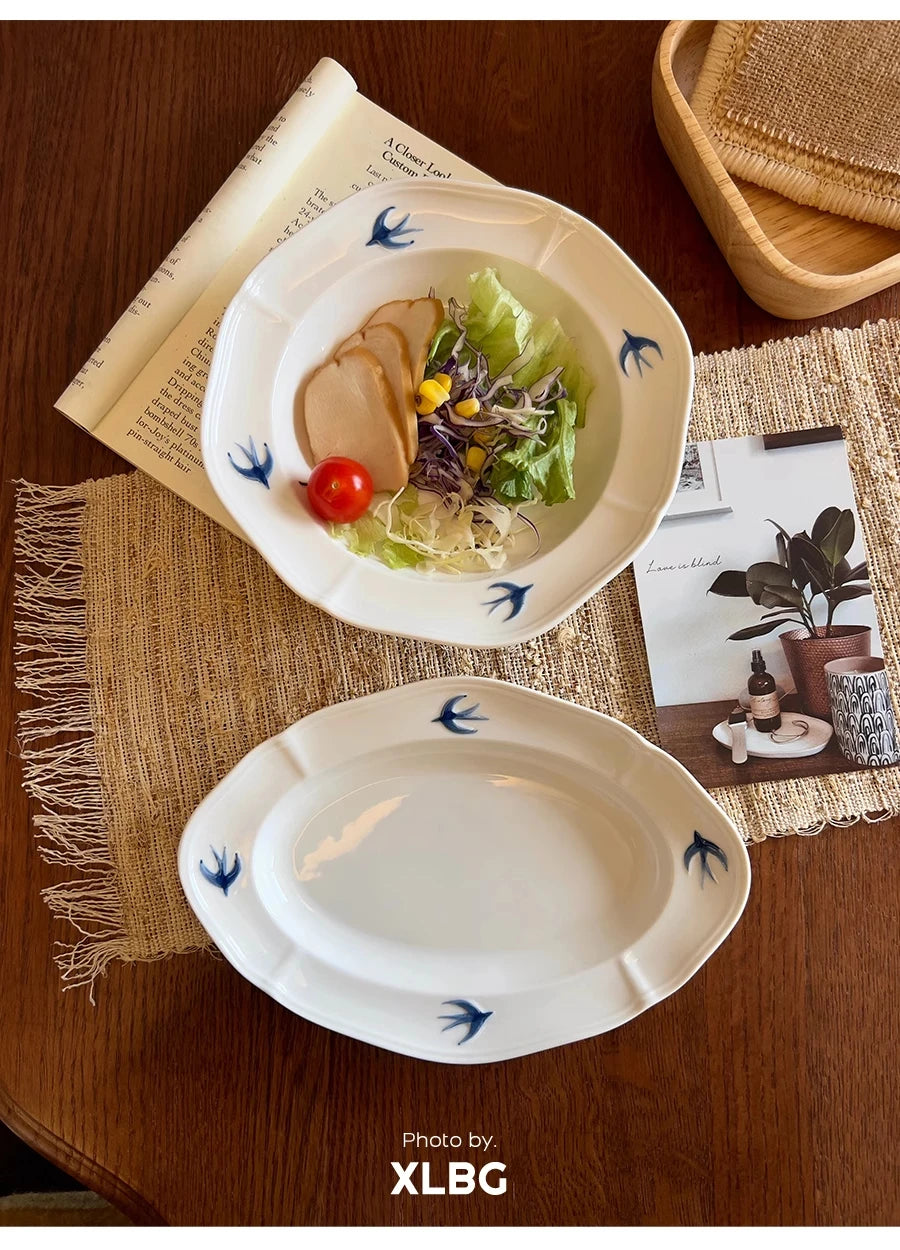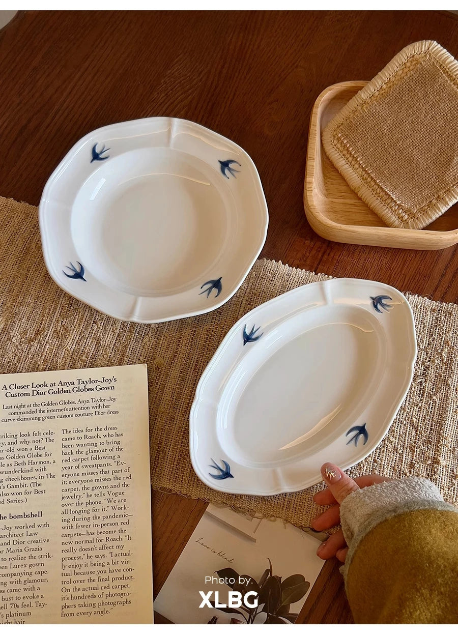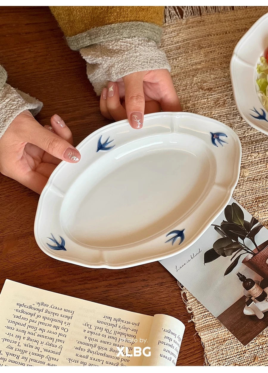 Swallow Oval Plates High-end Household Ceramic Serving Plate Ins White Breakfast Tray Retro Afternoon Tea Dessert Tableware