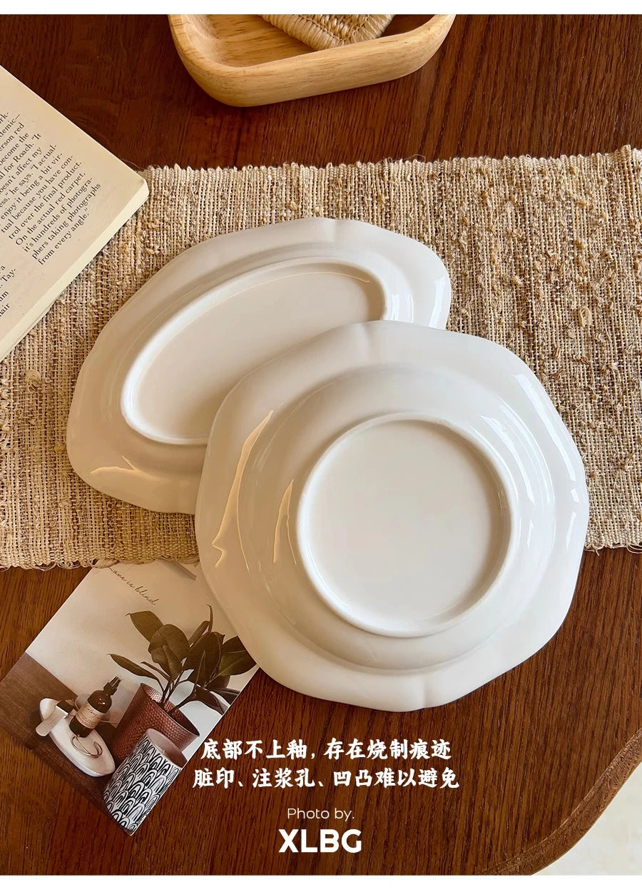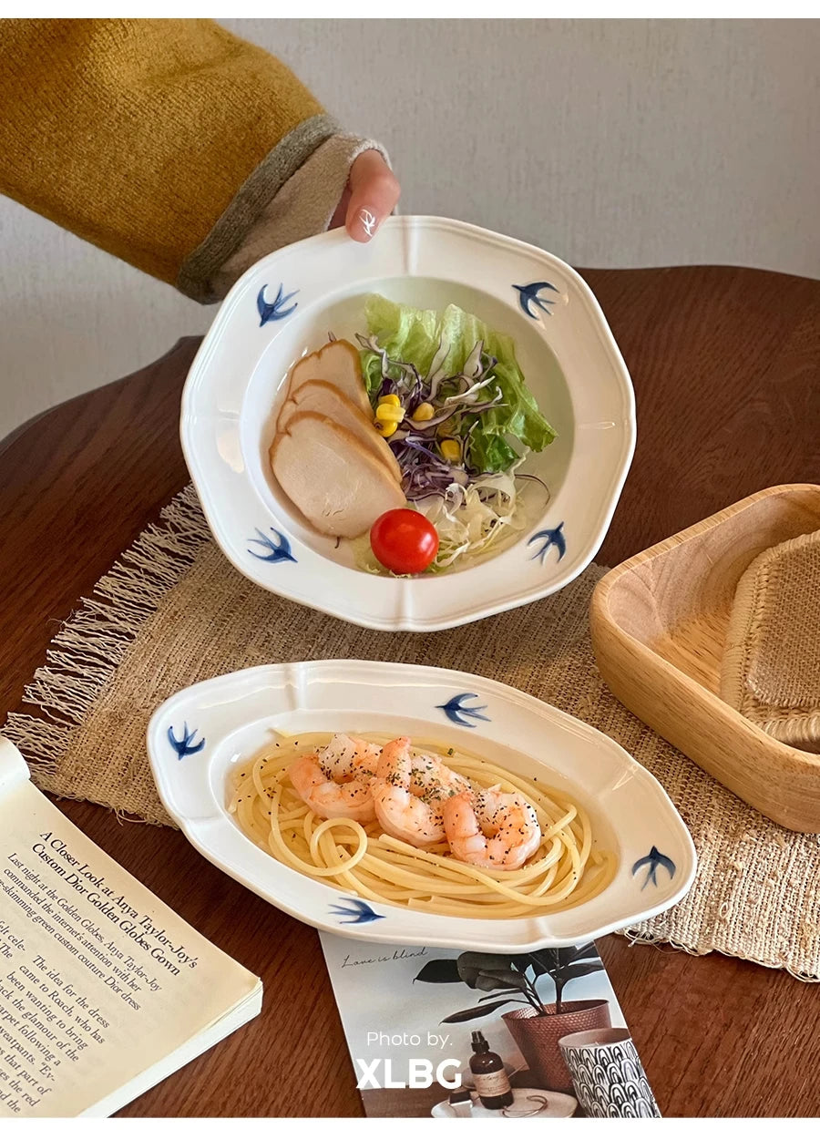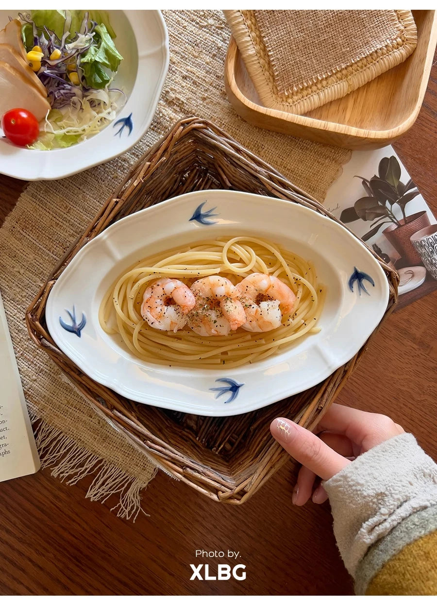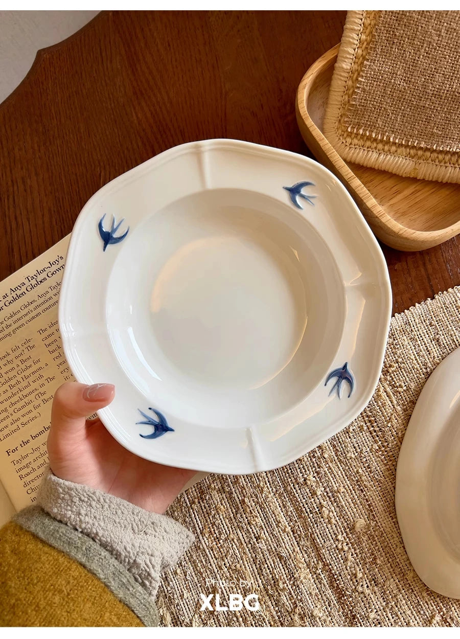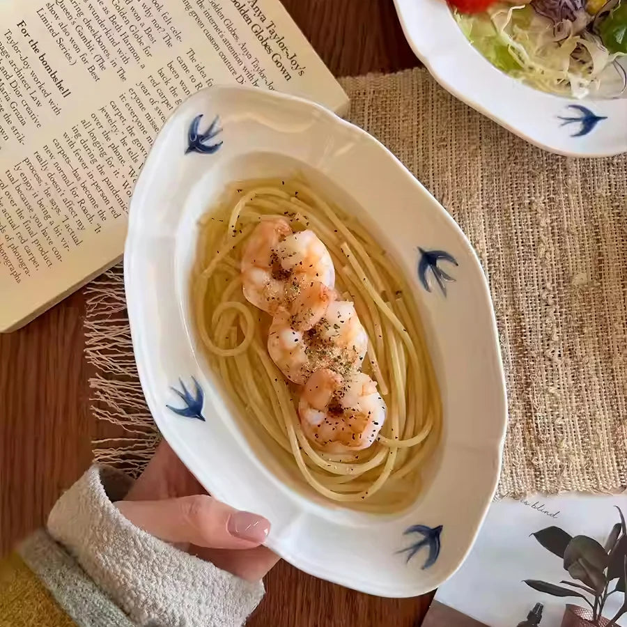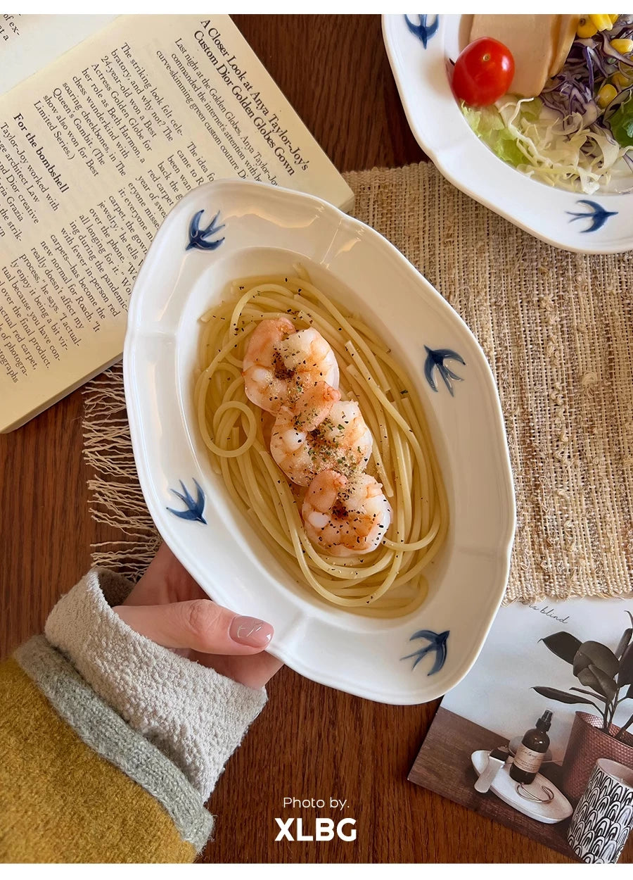 Swallow Oval Plates High-end Household Ceramic Serving Plate Ins White Breakfast Tray Retro Afternoon Tea Dessert Tableware