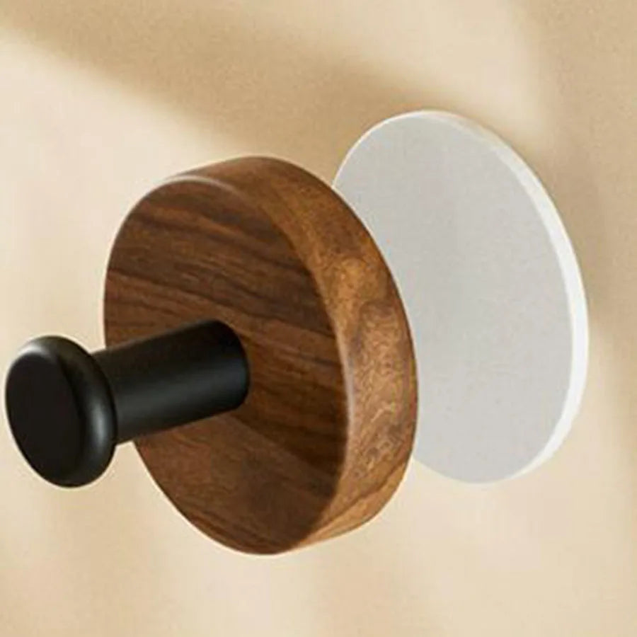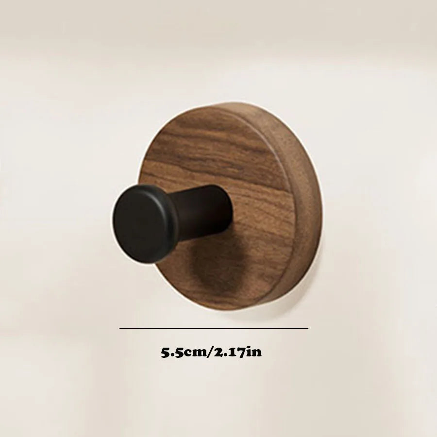 Walnut Wood Door Hook Adhesive Bathroom Towel Rack No-Drill Wall-Mounted Coat Hanger Wooden Hook for Kitchen or Bathroom