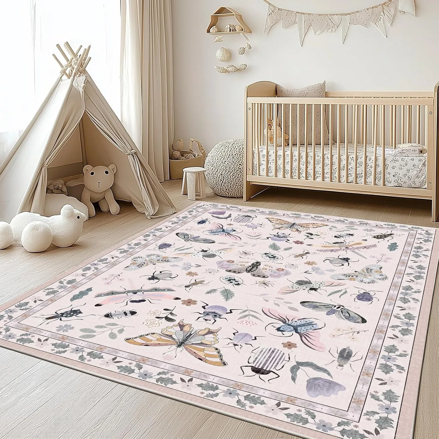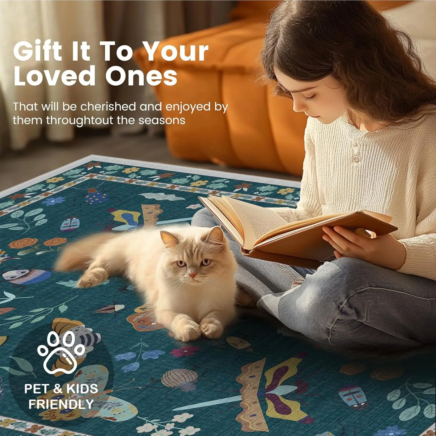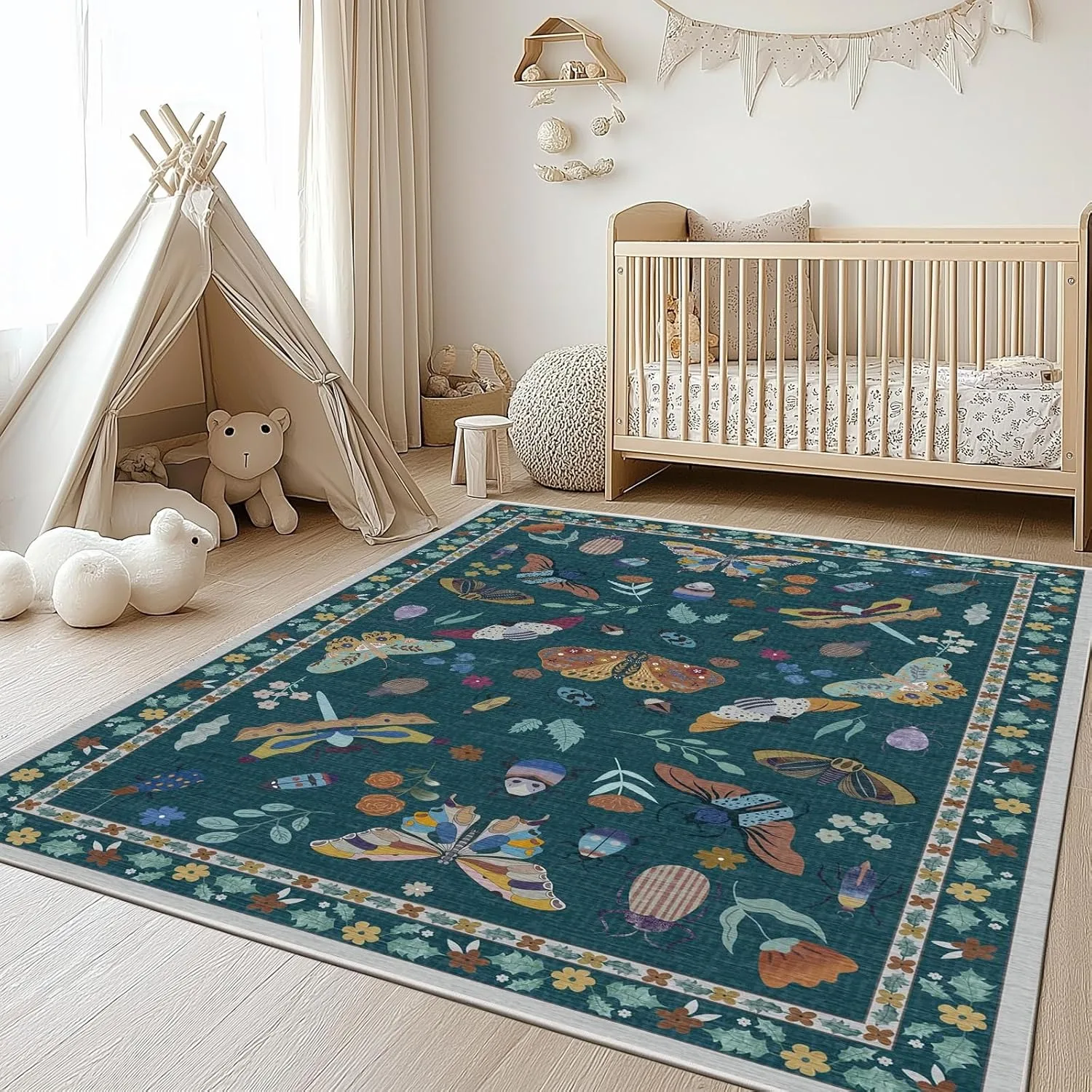 Butterfly Flower Living Room Carpet Stylish Non-slip Bedroom Rug Large Area Machine Washable Coffee Tables Floor Mat Alfombra