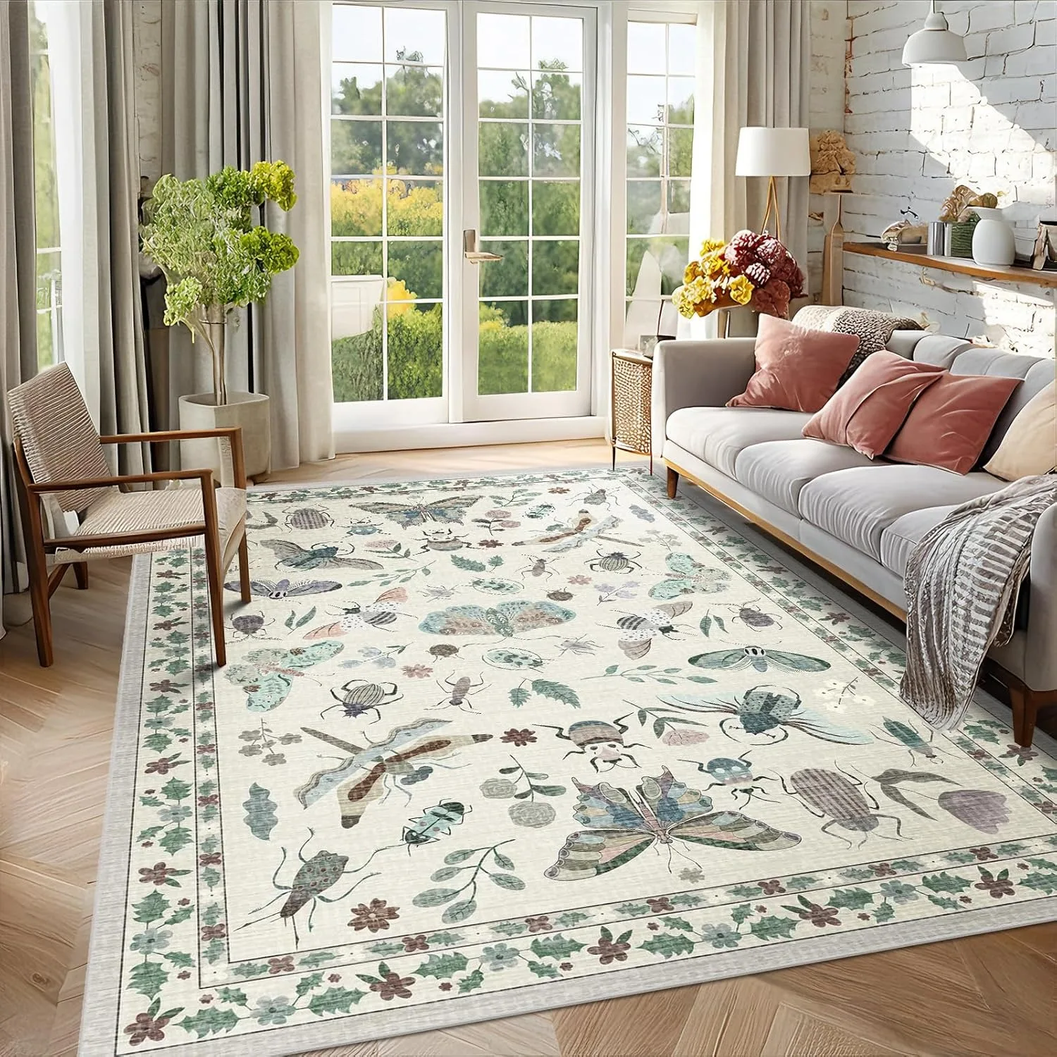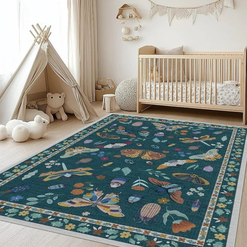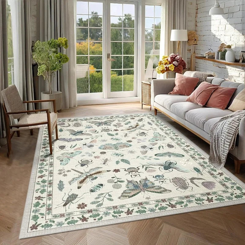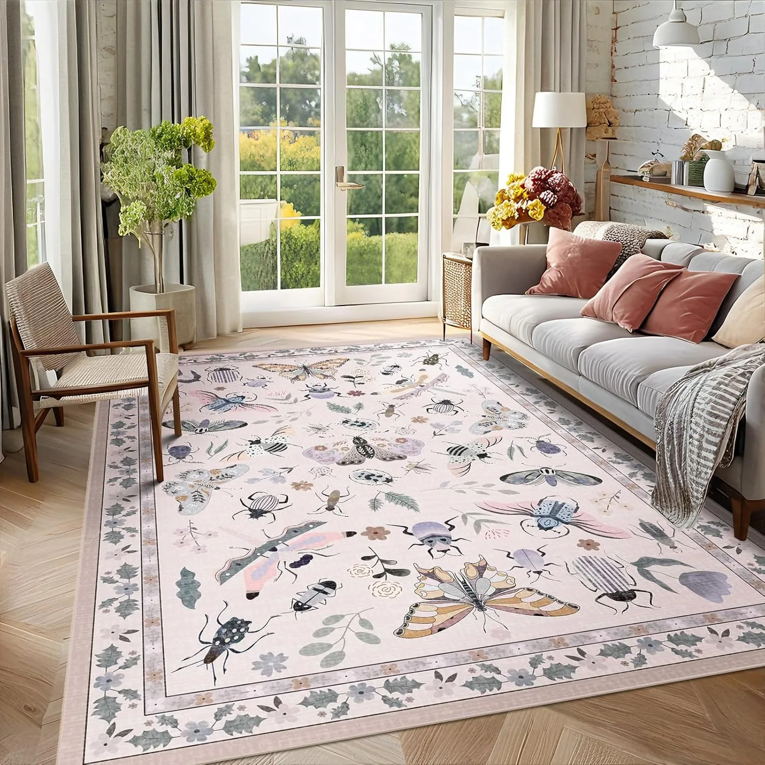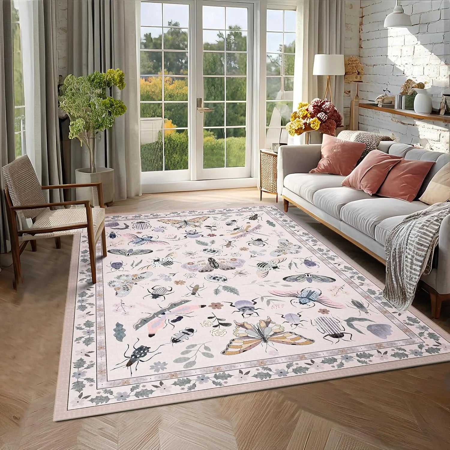 Butterfly Flower Living Room Carpet Stylish Non-slip Bedroom Rug Large Area Machine Washable Coffee Tables Floor Mat 러그 Alfombra