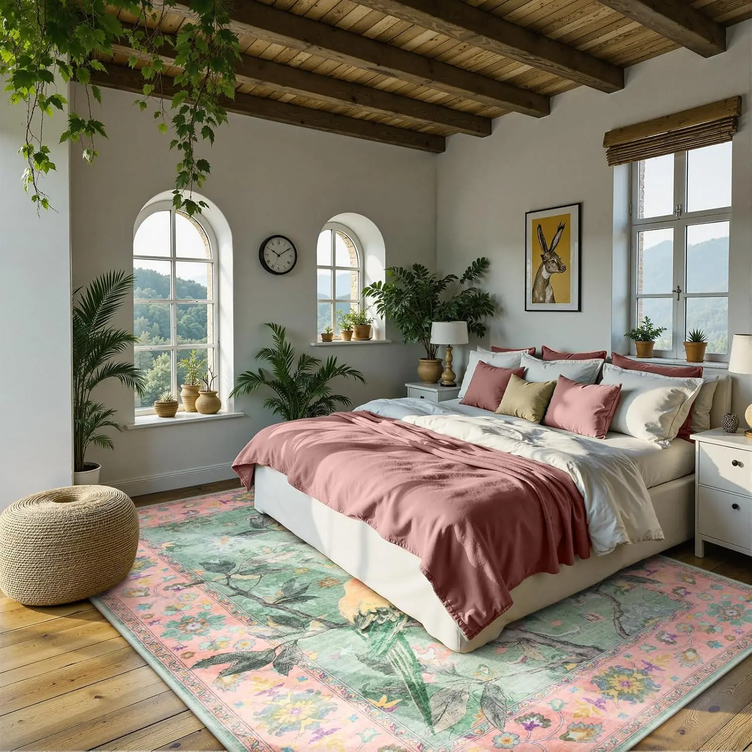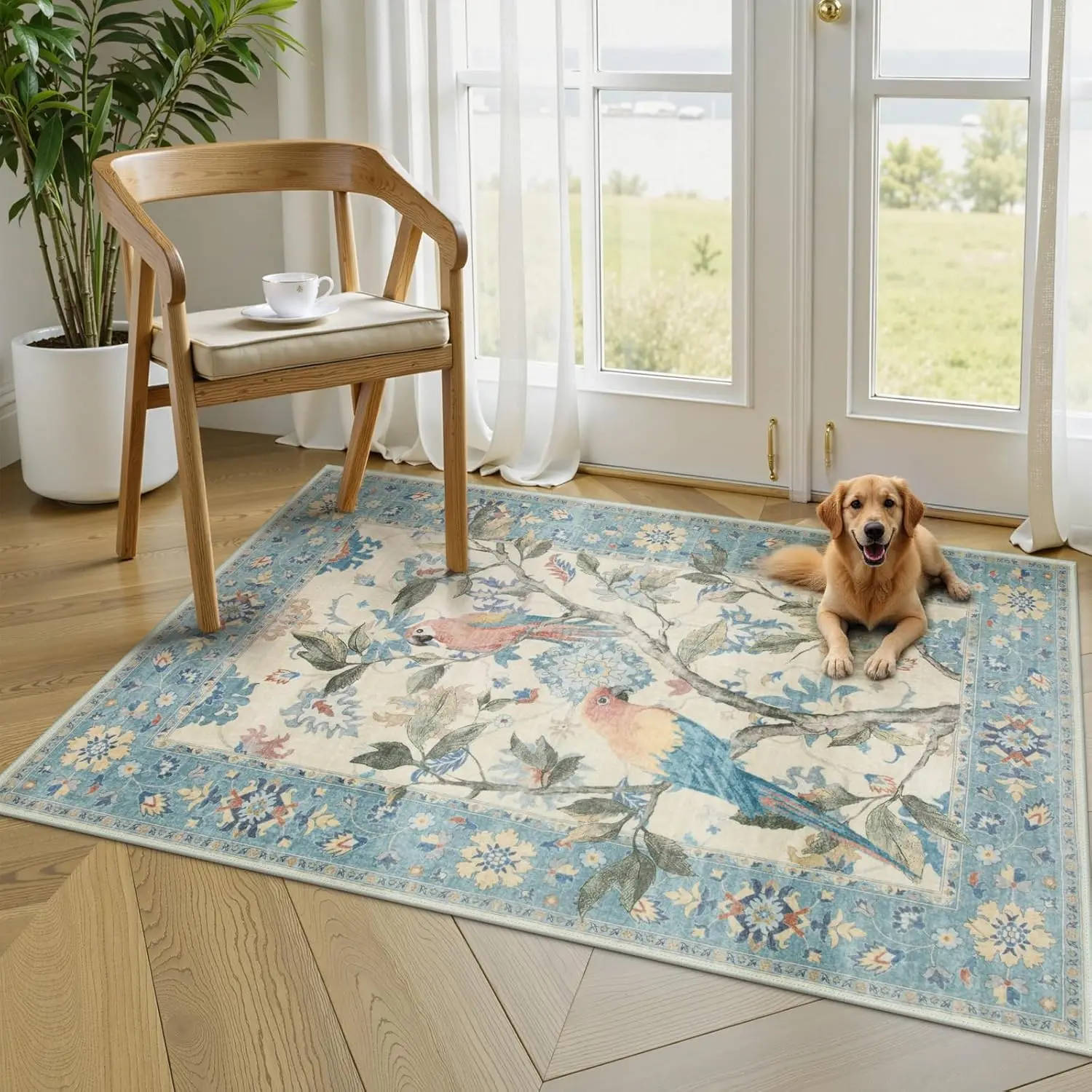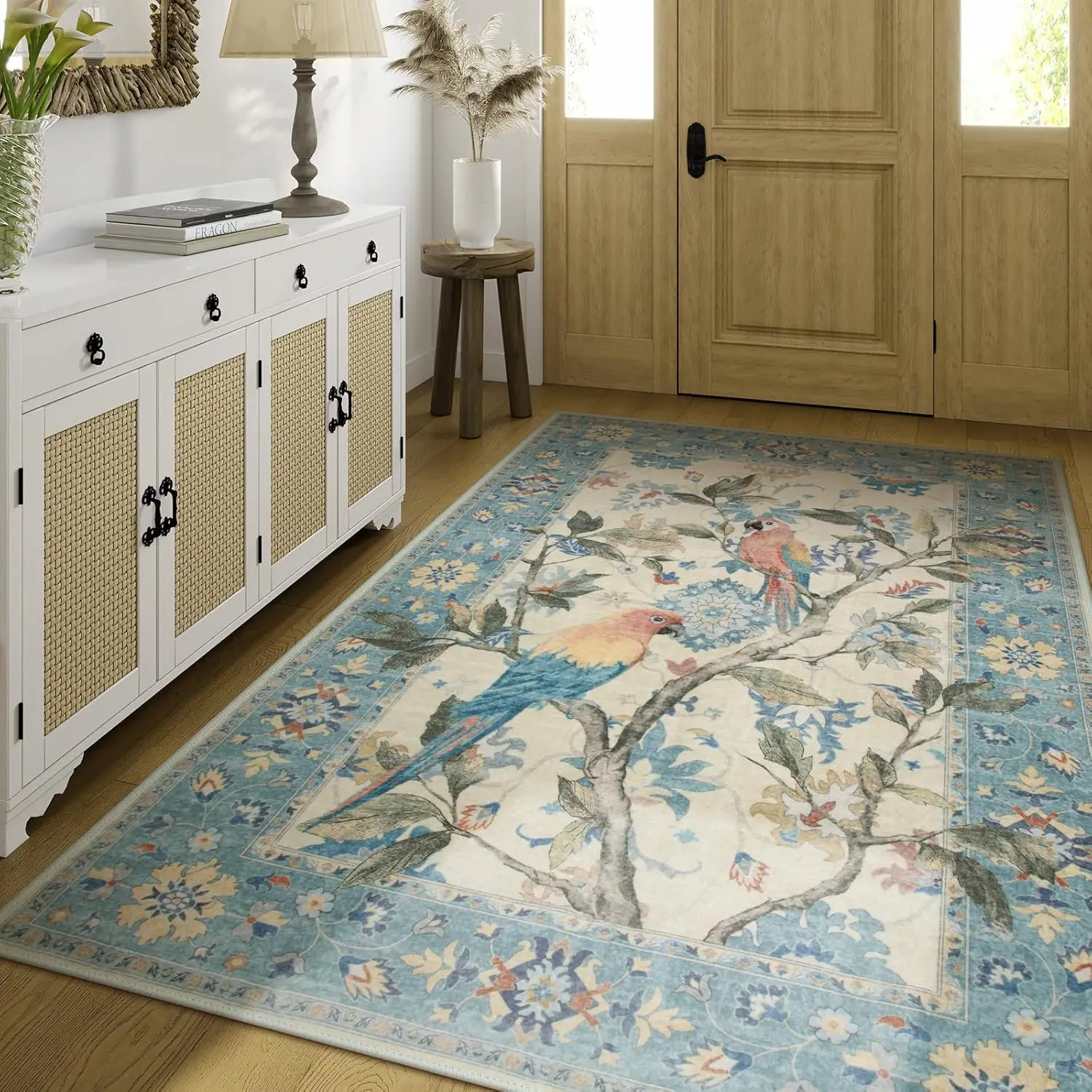 Floral Print Living Room Carpet Retro Light Luxury Large Area Bedroom Plush Rugs Home Decoration Coffee Table Floor Mat Tapis 러그