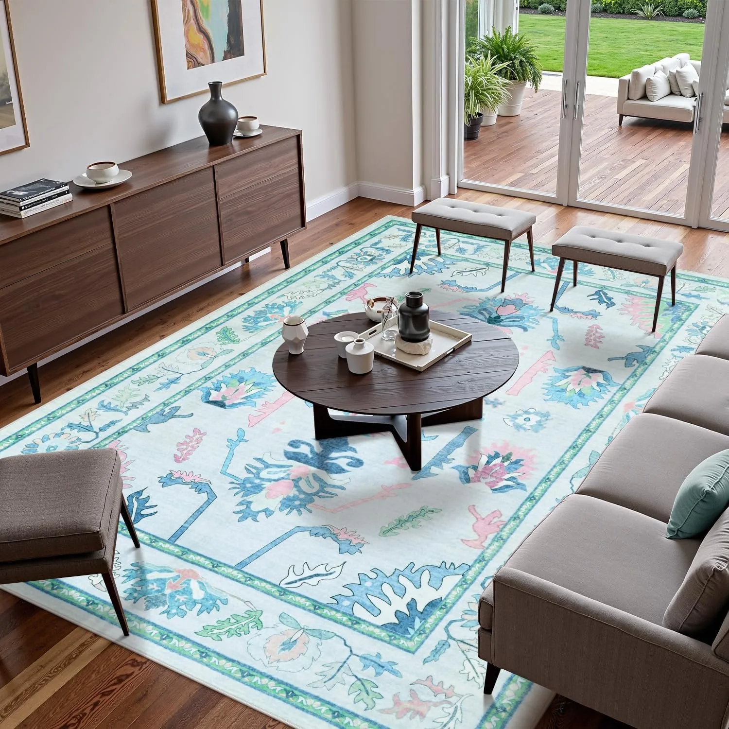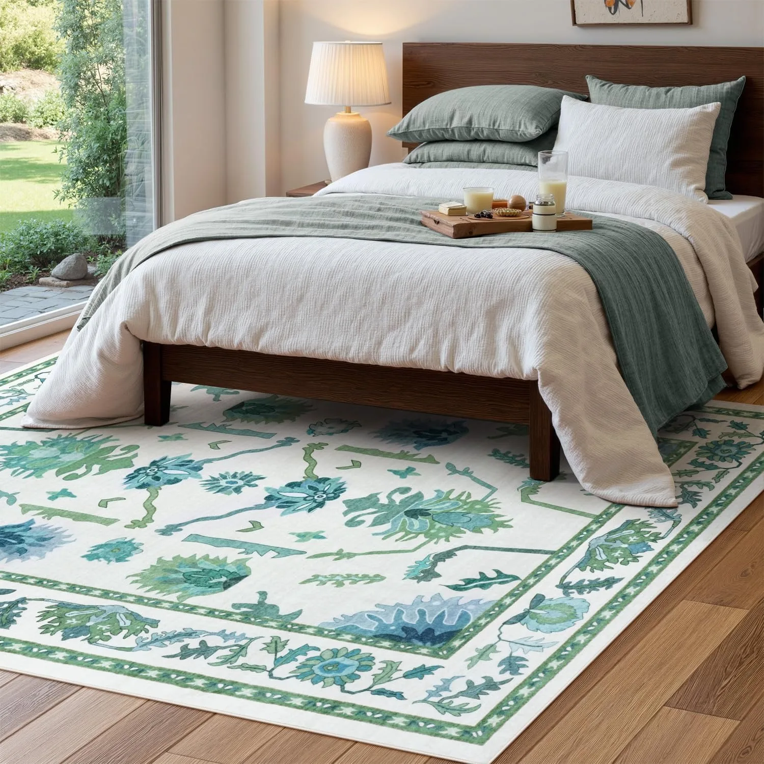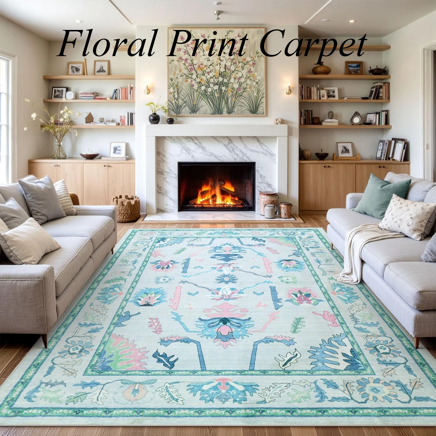 Fresh Elegant Living Rooms Floor Mat Floral Print Home Decoration Rug Non-slip Machine Washable Coffee Table Floor Mats 러그 Ковер