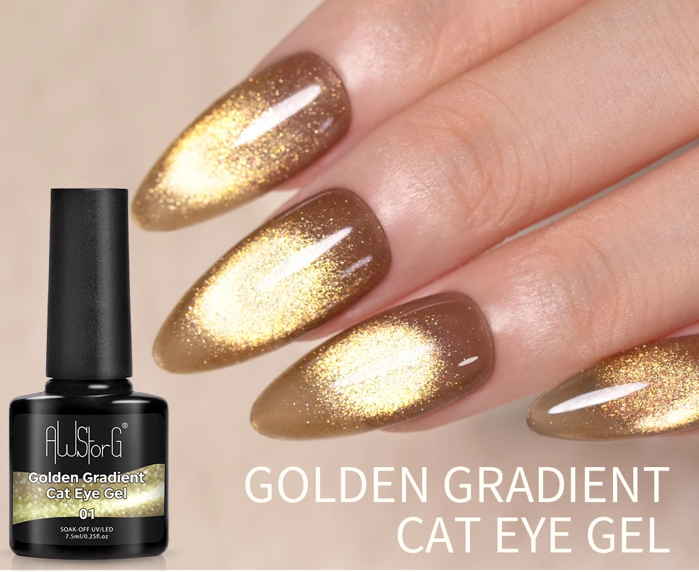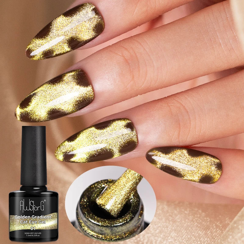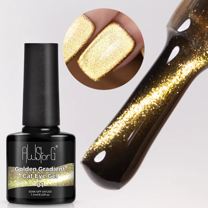 7.5ml Golden Gradient Cat Eye Nail Polish Gel Phototherapeutic Gel Soak Off Nail Magnetic Gel Polish Nail Art DlY