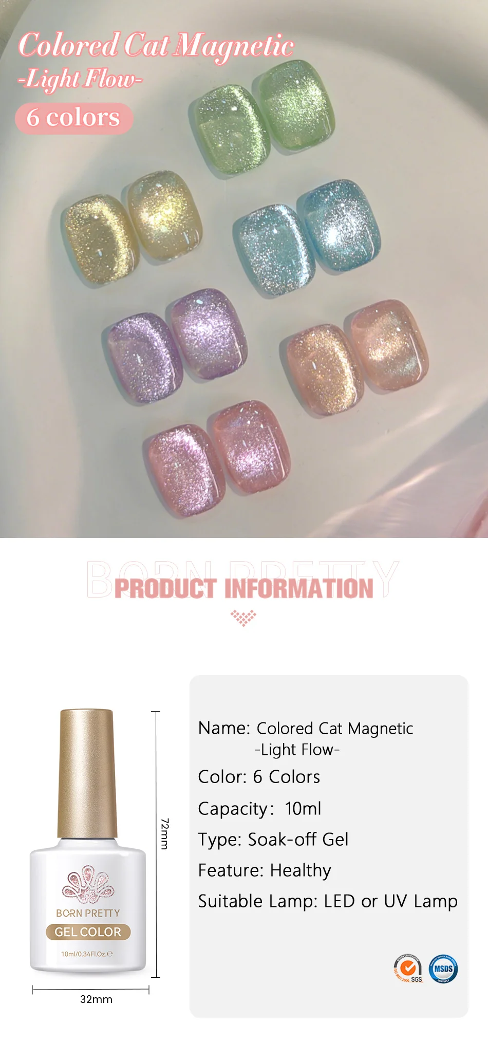 Pink Light Flow Cat Magnetic Gel Nail Polish 10ml Holographics Shining Line Magnetic Long Lasting DIY Salon Varinsh