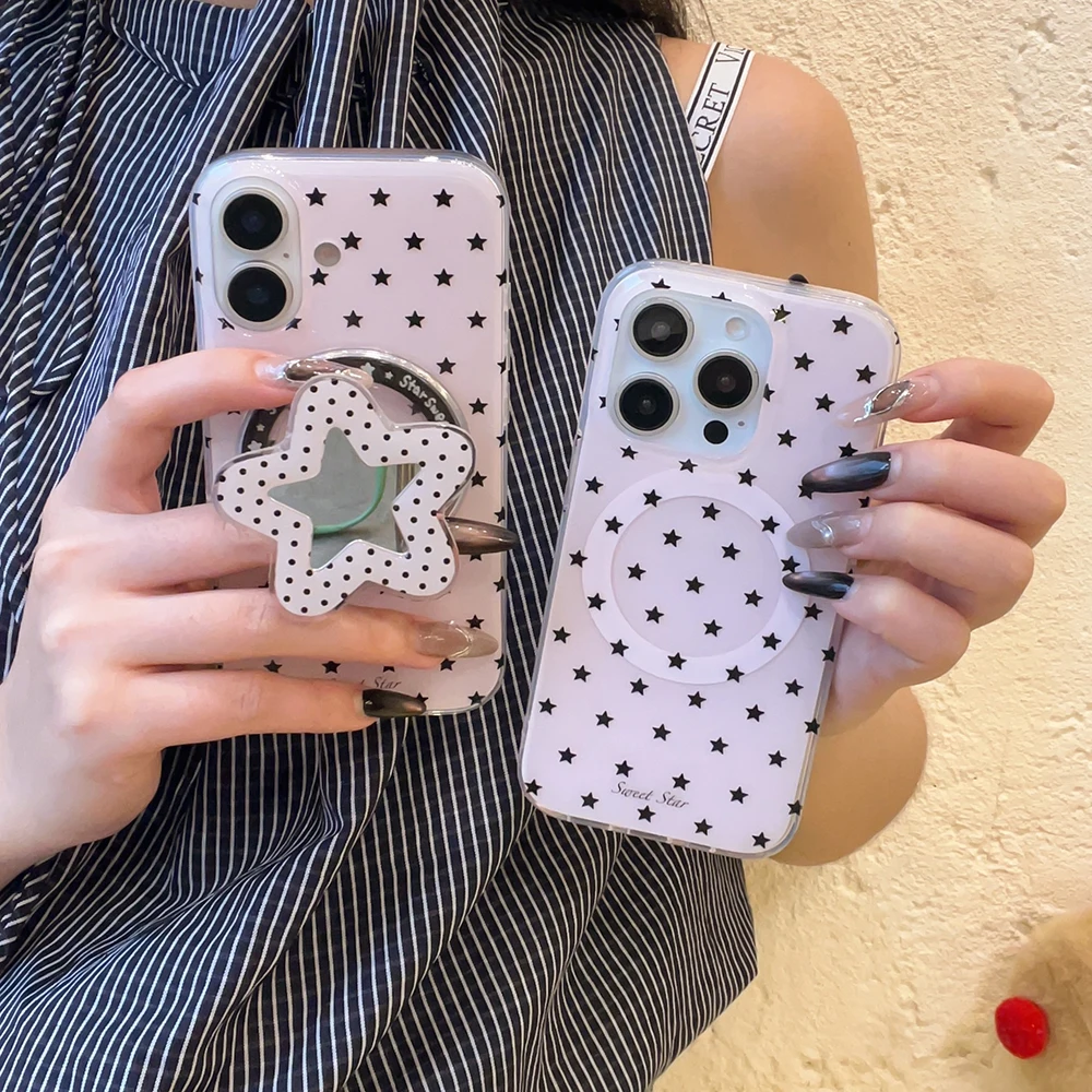 3D Cute Stars for Magsafe Magnetic Holder Phone Case for Iphone 16pro 15promax 14 13 Pro Max Mirror Back Cover for Women Girl