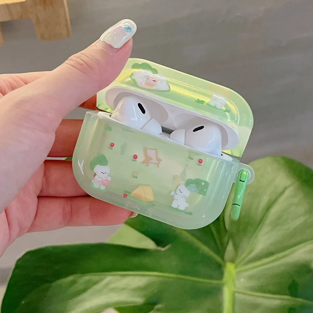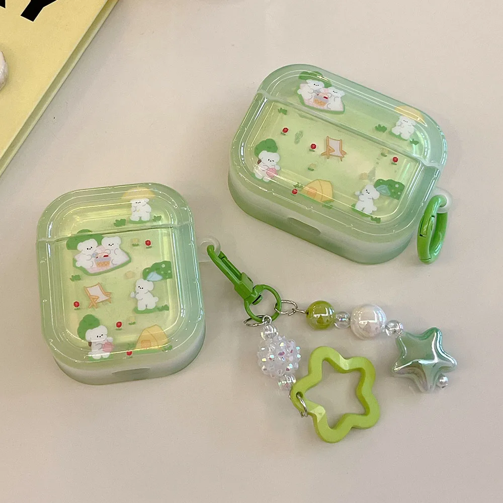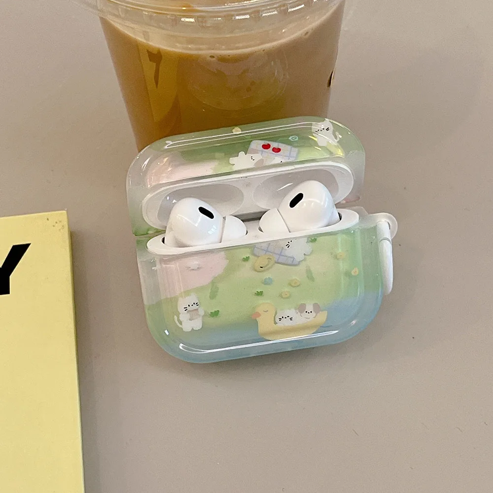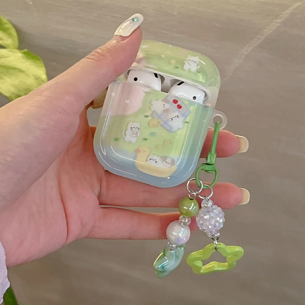 Grass dog cat flower cute clear capa for airpods 1 2 3 4 pro 2 bluetooth earphone case with decorate keyrchain soft lovely funda