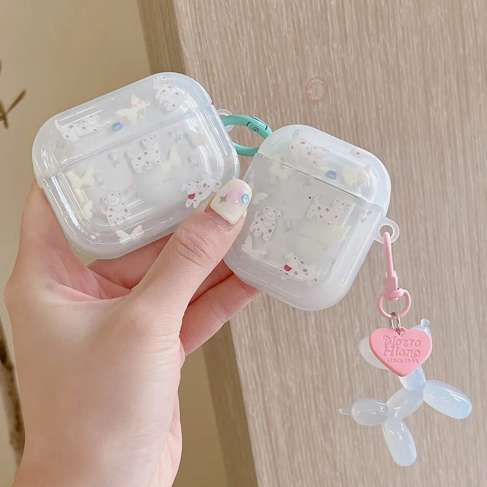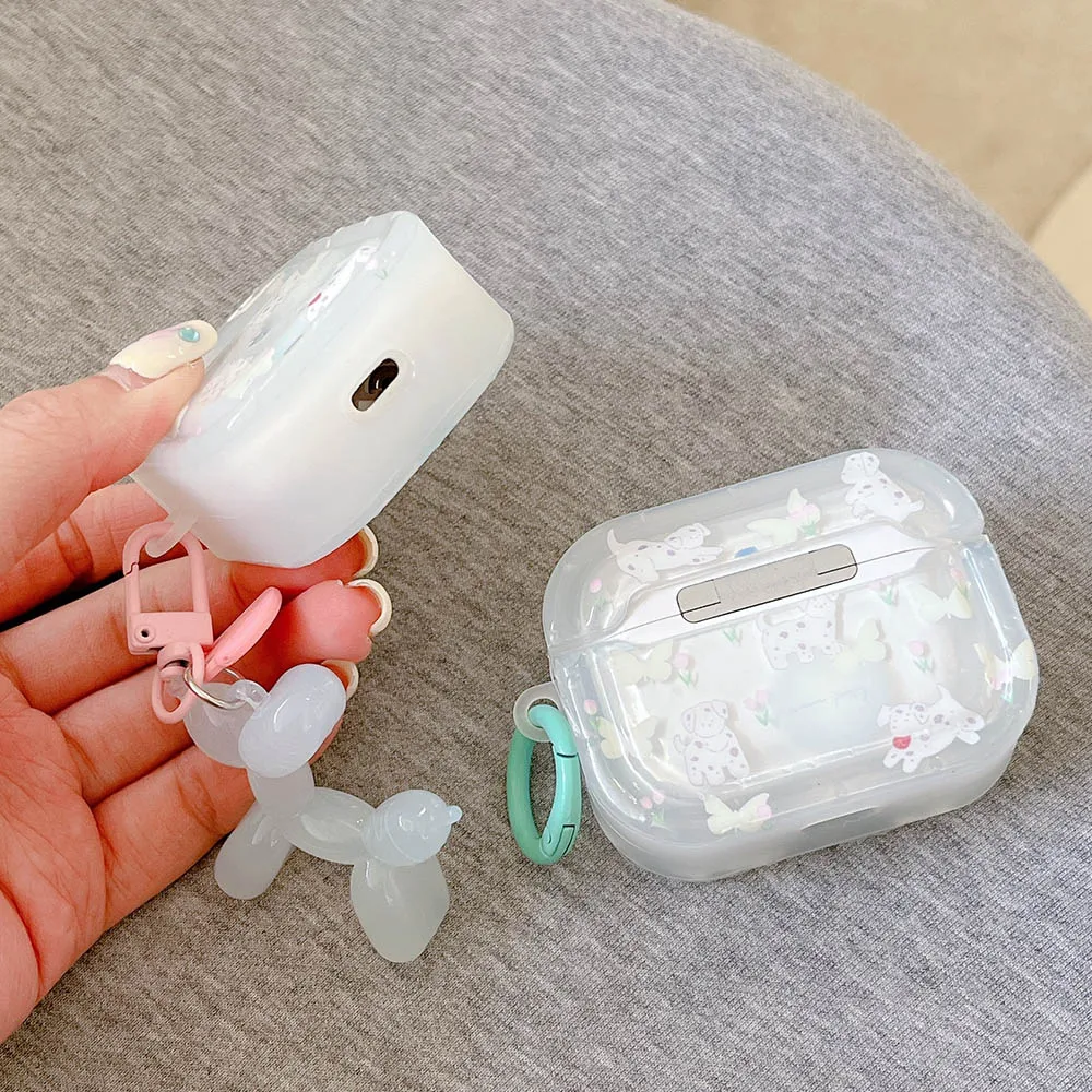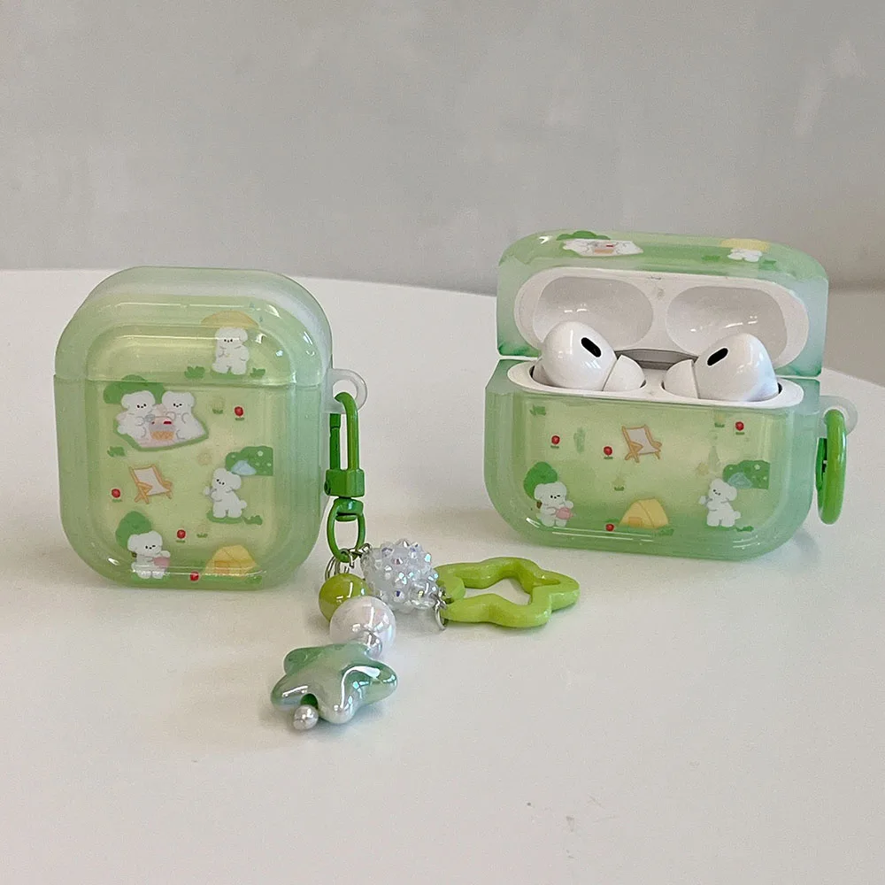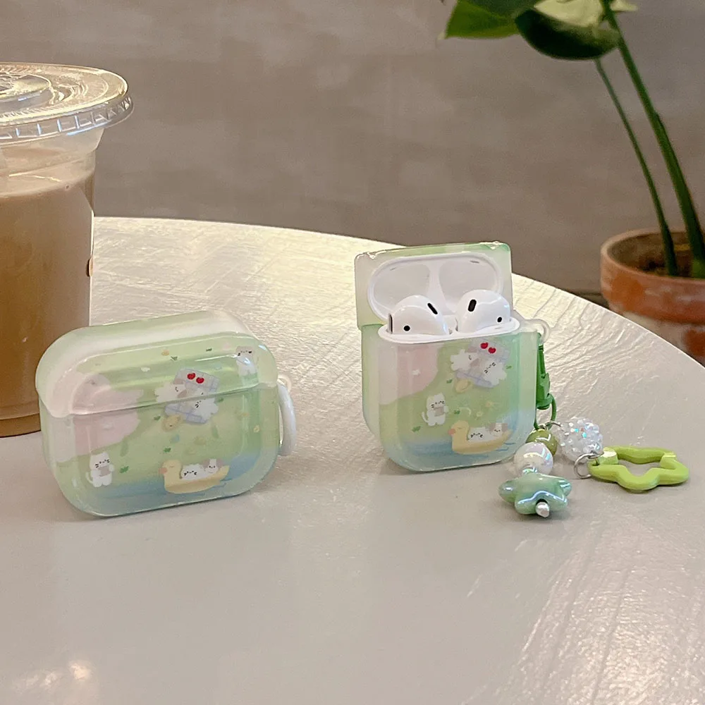 Grass dog cat flower cute clear capa for airpods 1 2 3 4 pro 2 bluetooth earphone case with decorate keyrchain soft lovely funda