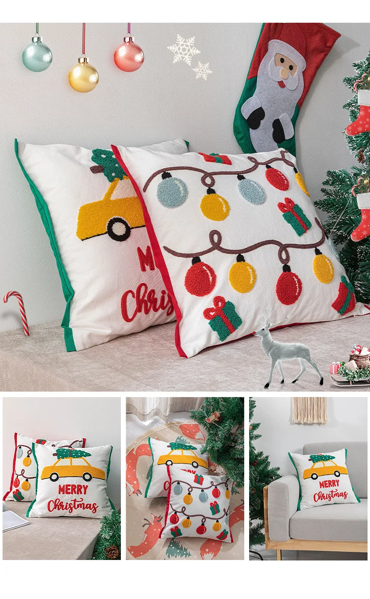 Decor Embroidered Cushion Cover Christmas Tree Santa Snow Flower Pillow Case Cotton Square Embroidery Pillow Cover 45x45cm