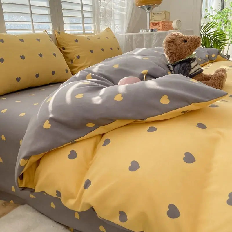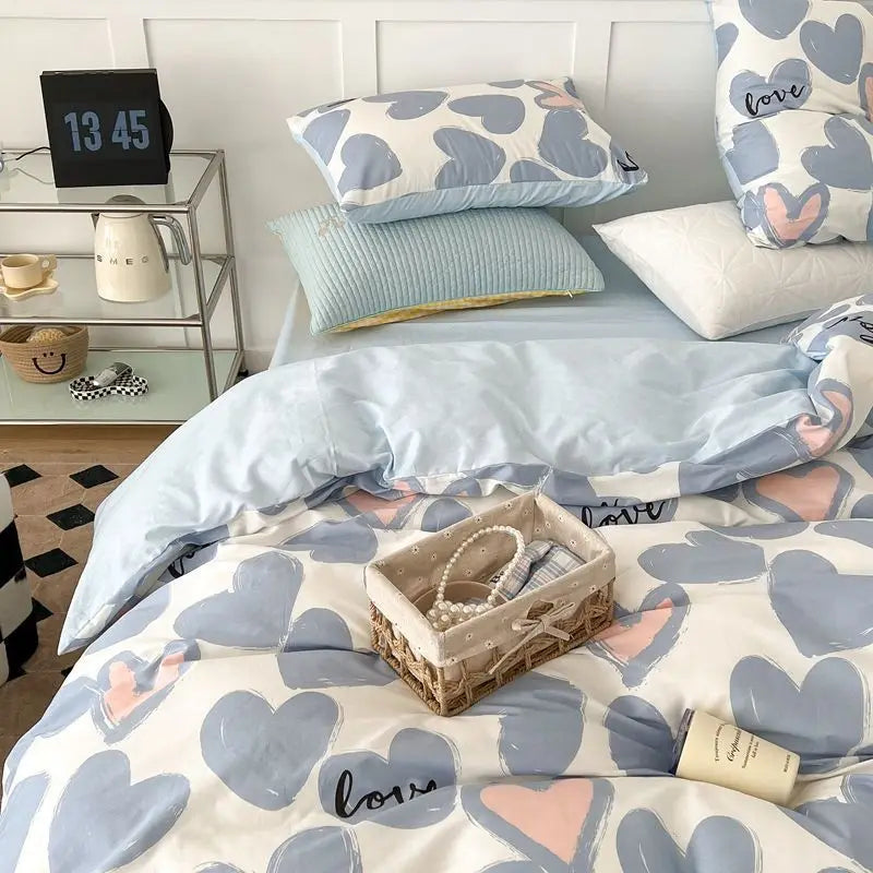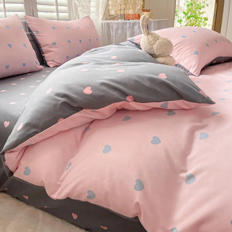 Pink Sweetheart Bedding Set Fashion Heart Single Double Queen Size Flat Sheet Duvet Cover Pillowcase Girl Gift Home Textile
