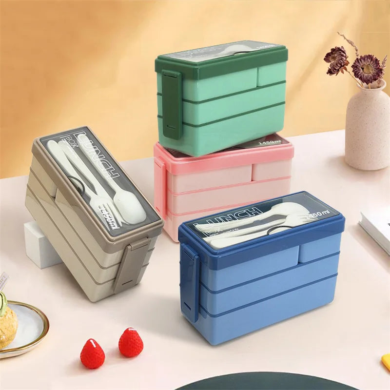 3 Layers Lunch Box Stackable Bento Boxes For Adults Office Students Lunch Box With Fork Spoon Microwave Food Storage Container