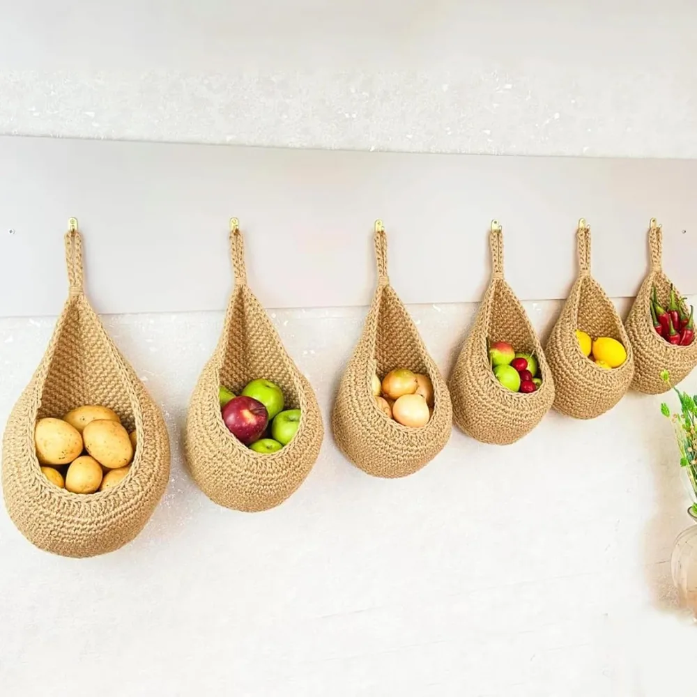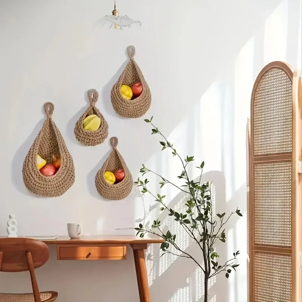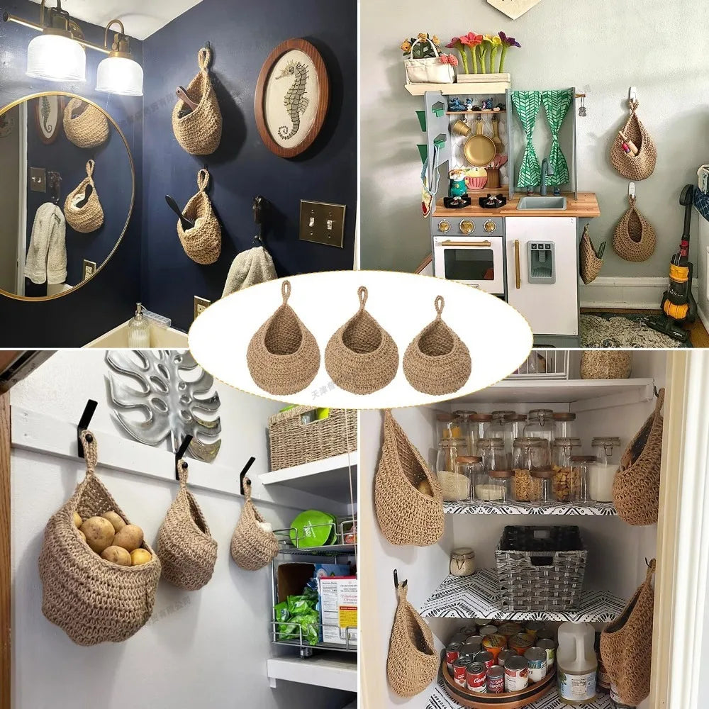 Hanging Baskets for Veggies Kitchen Fruit Basket Wall Baskets Woven Produce Holder Storage Fruit Wall Hooks Home Restaurant
