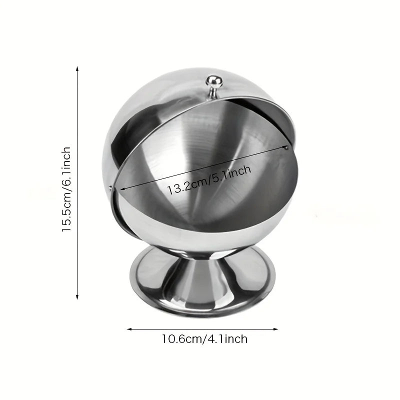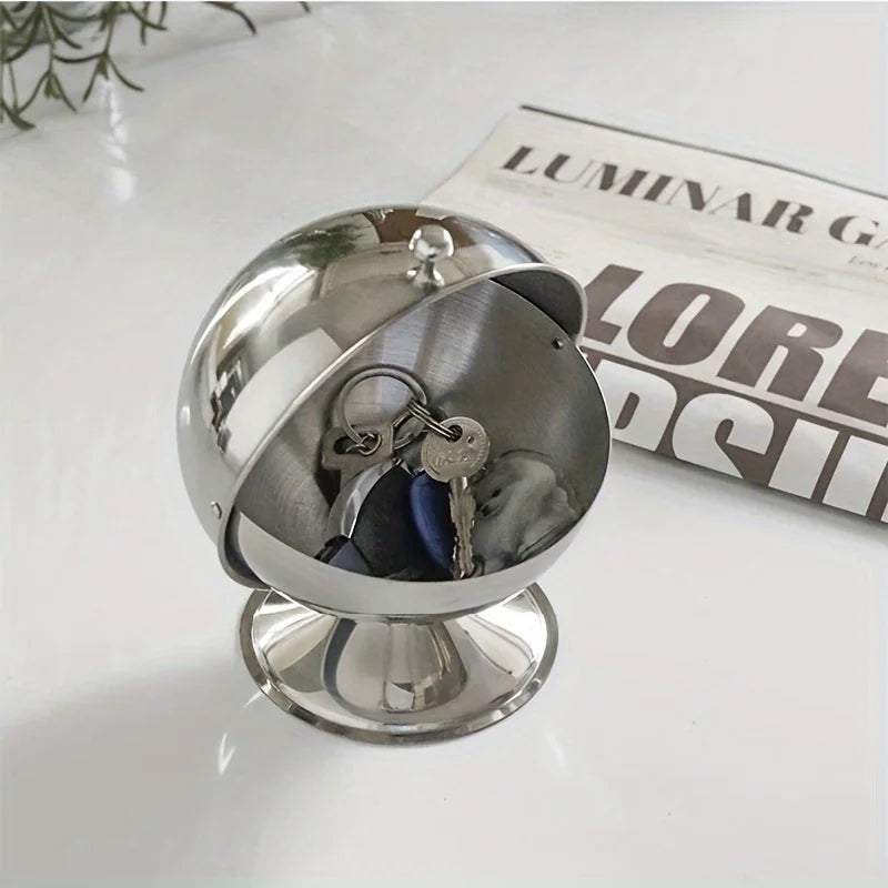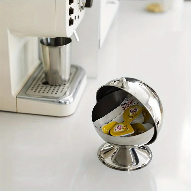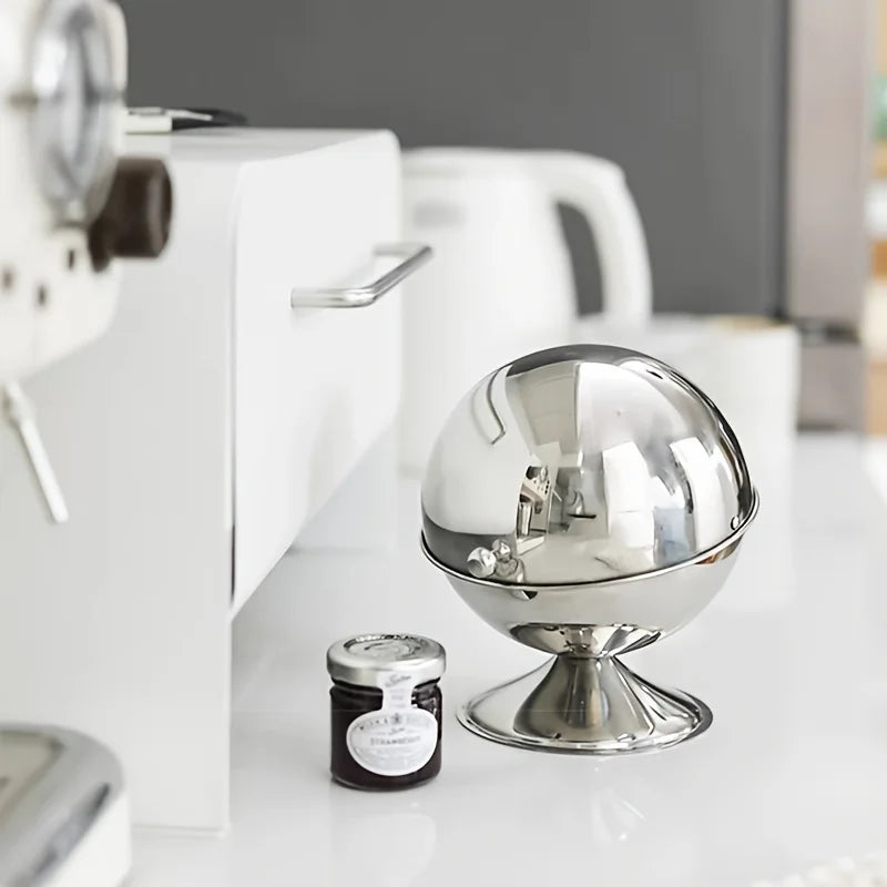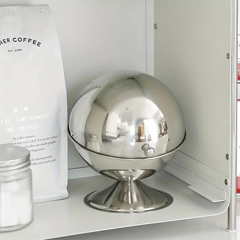 Stainless Steel Storage Jar Sphere Storage Jar with Flip-Top Lid  Modern Round Desktop Organizer for Kitchen Home Office