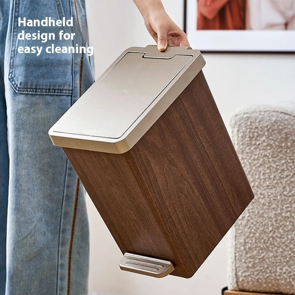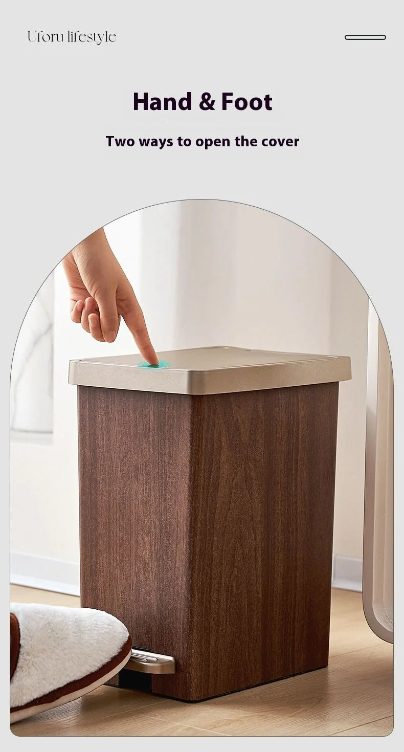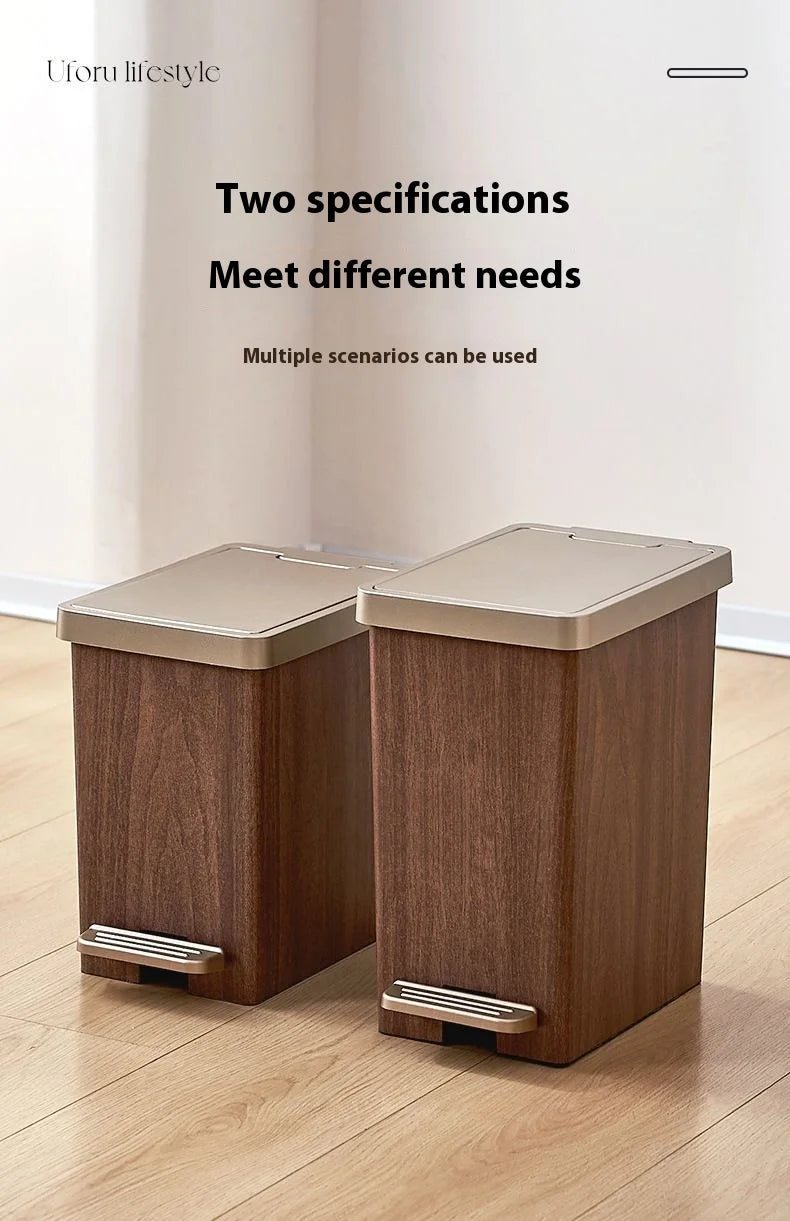 Wood Grain Garbage Bin High-end Household Garbage Storage Sealed with Lid Double Opening Design Kitchen and Bathroom Garbage Bin