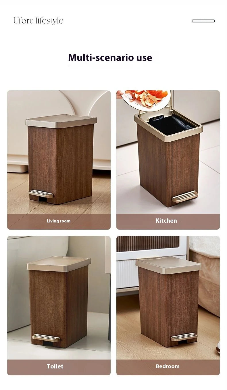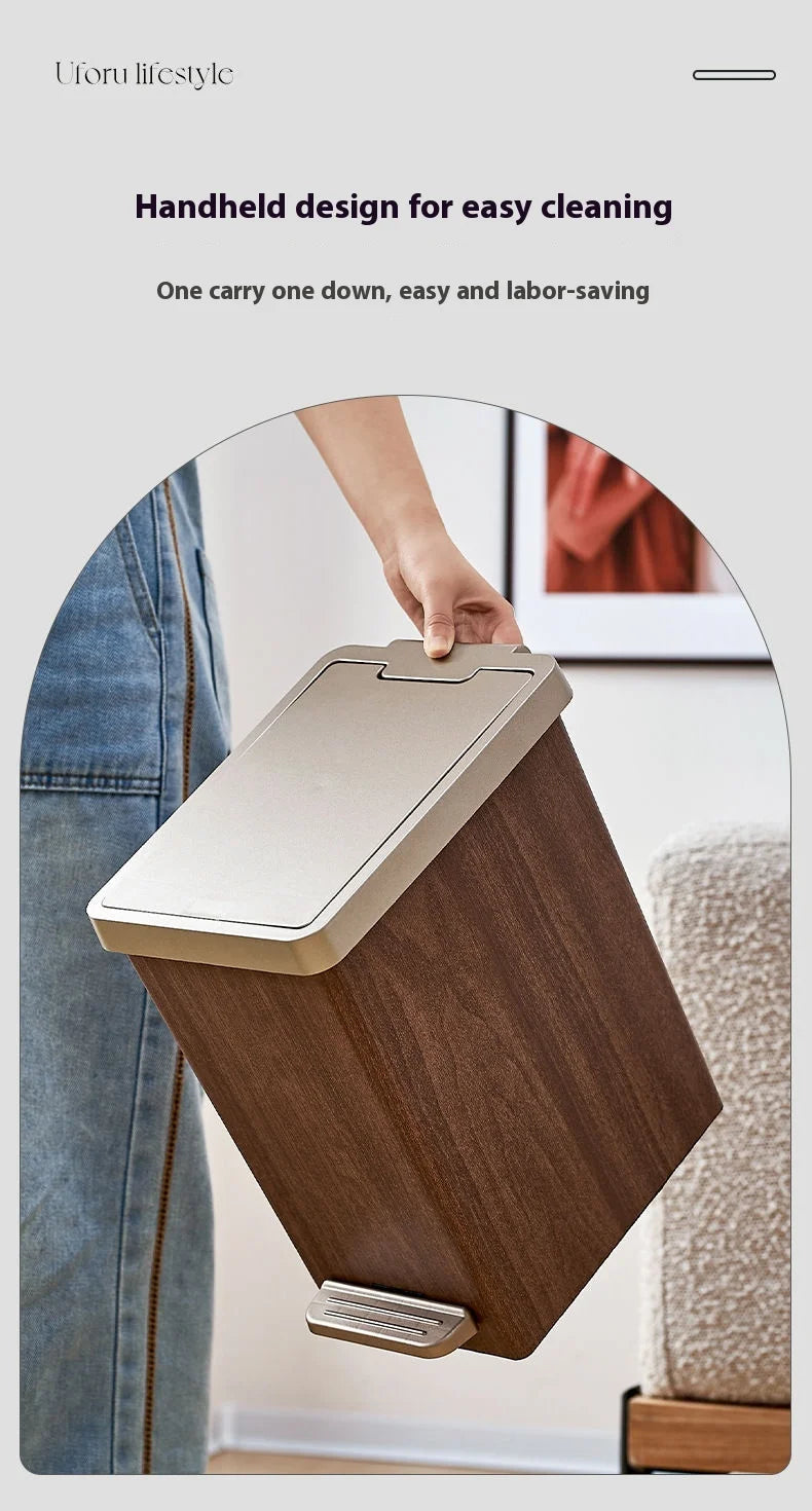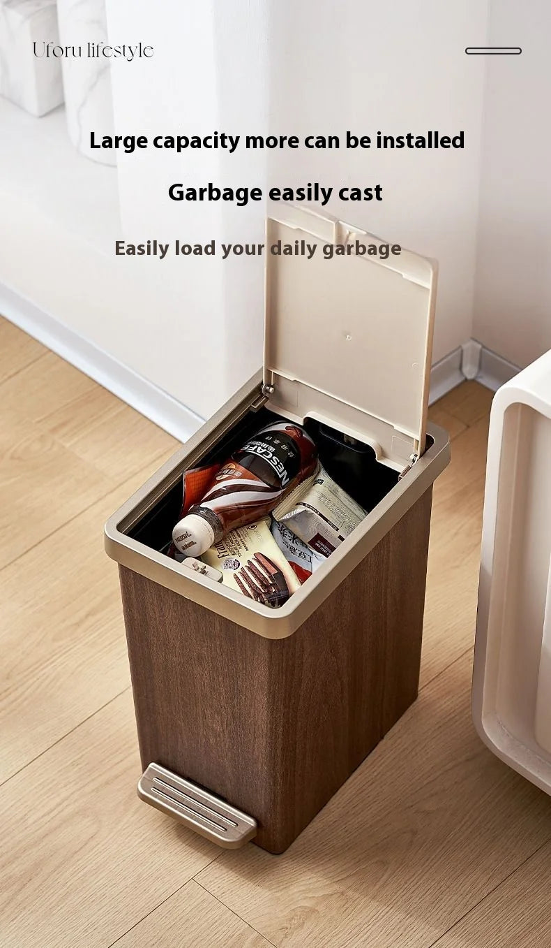 Wood Grain Garbage Bin High-end Household Garbage Storage Sealed with Lid Double Opening Design Kitchen and Bathroom Garbage Bin
