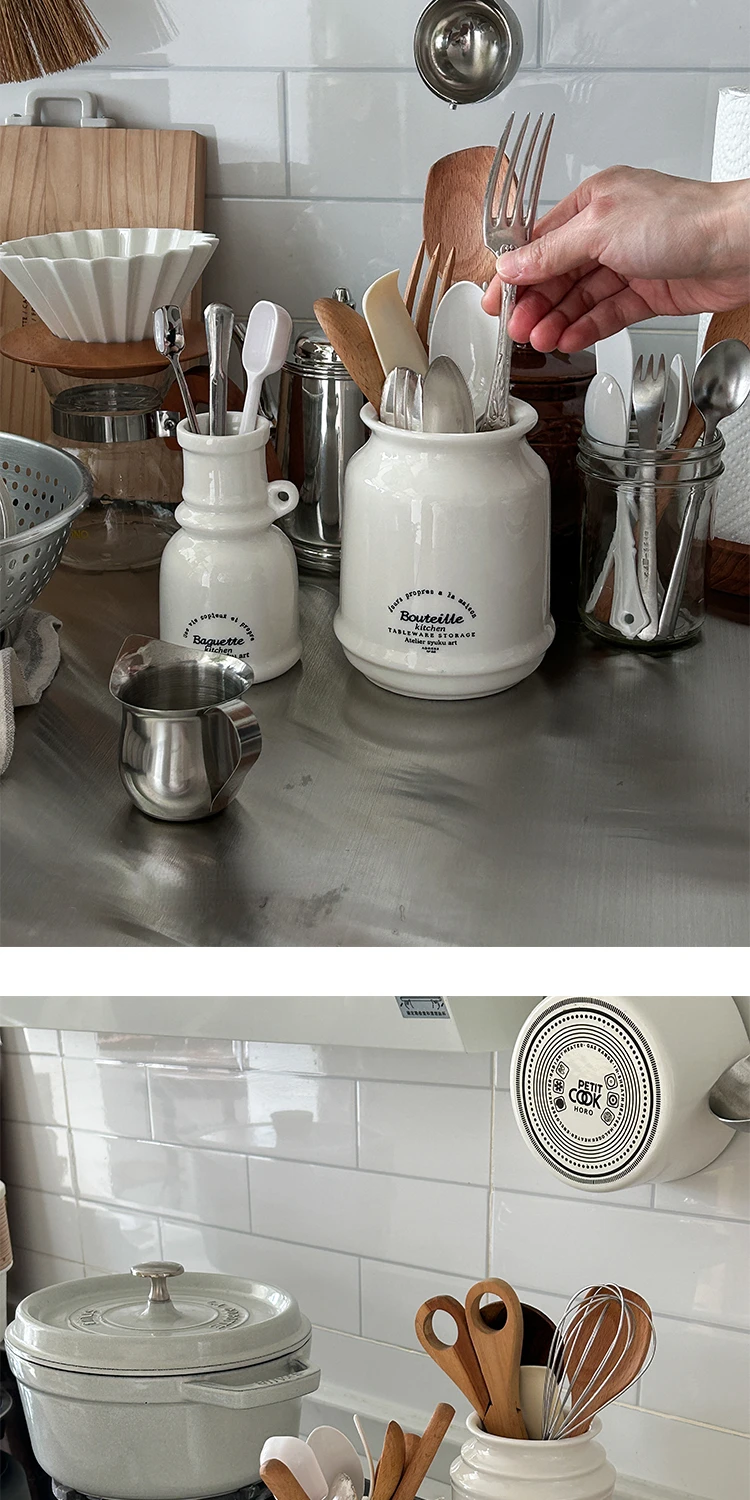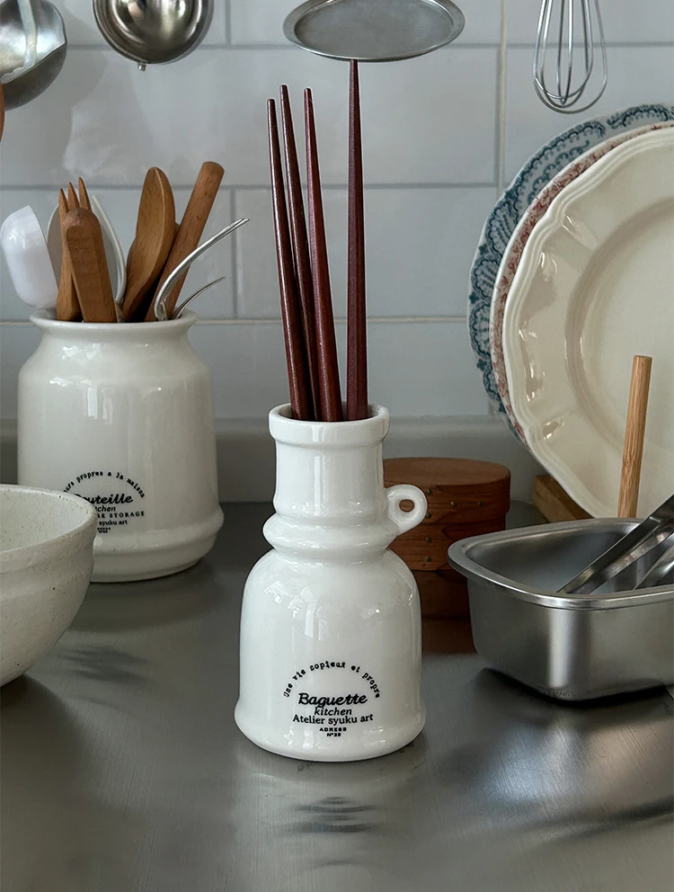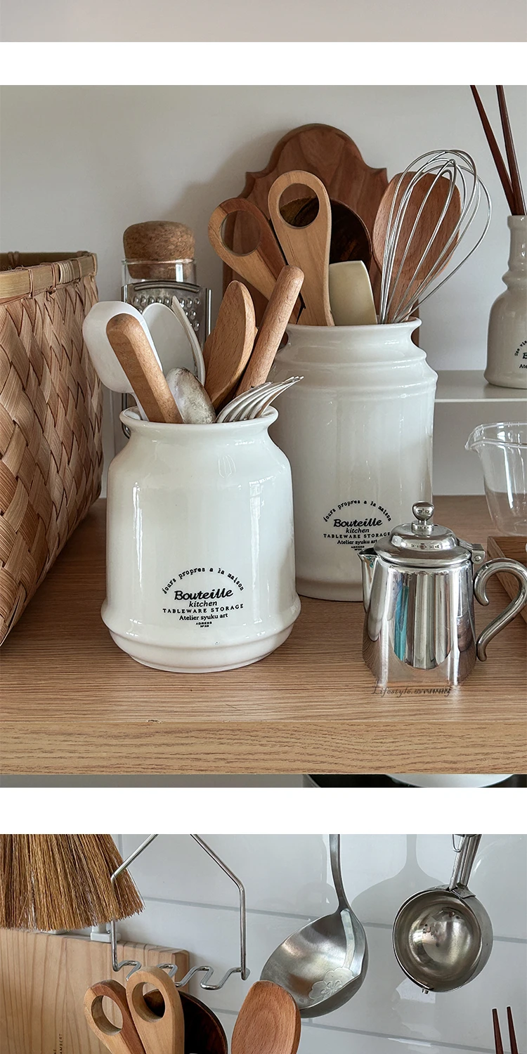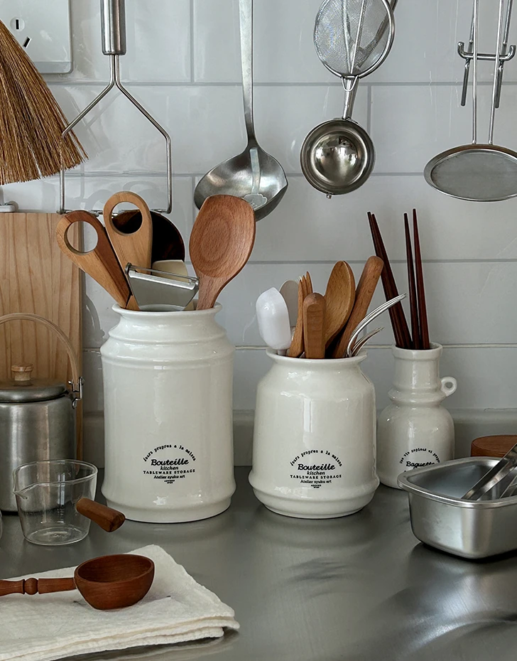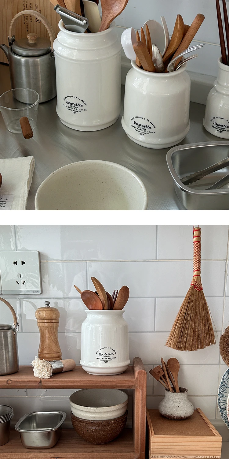 French Japanese Style Retro Kitchen Utensils Knives Forks Chopsticks Tubes Storage Jars Bottles and Vases
