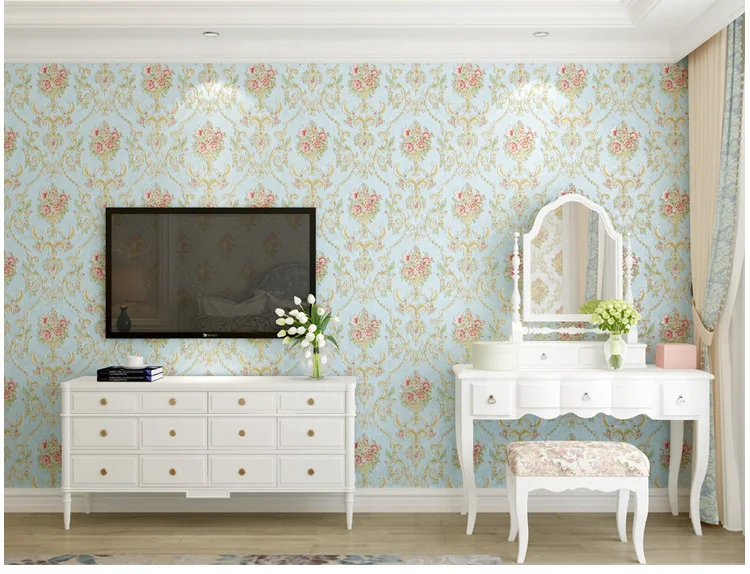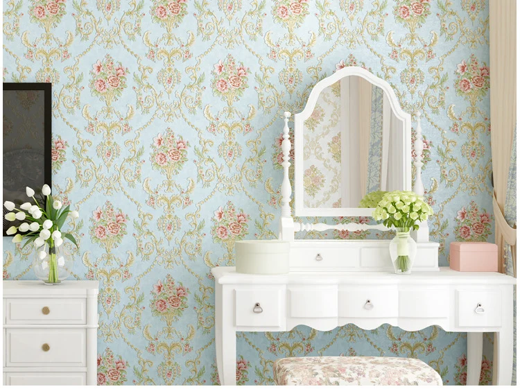 European wallpaper self-adhesive pastoral flower luxury wall stickers self-adhesive bedroom living room home background wall wal