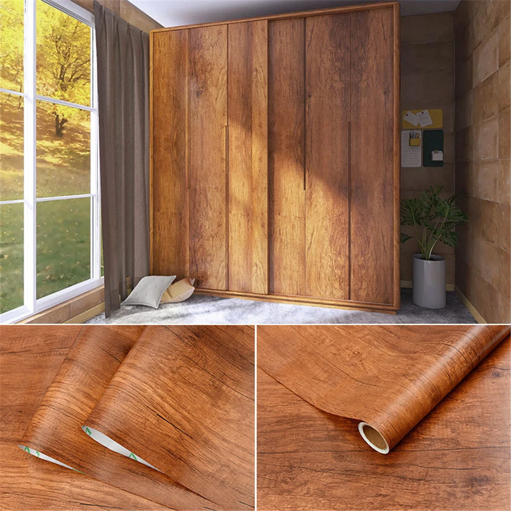 PVC Waterproof Self Adhesive Wallpaper Wall in Rolls Furniture Vinyl Decor Film Wood Grain Stickers For Kitchen Wall Home Decor