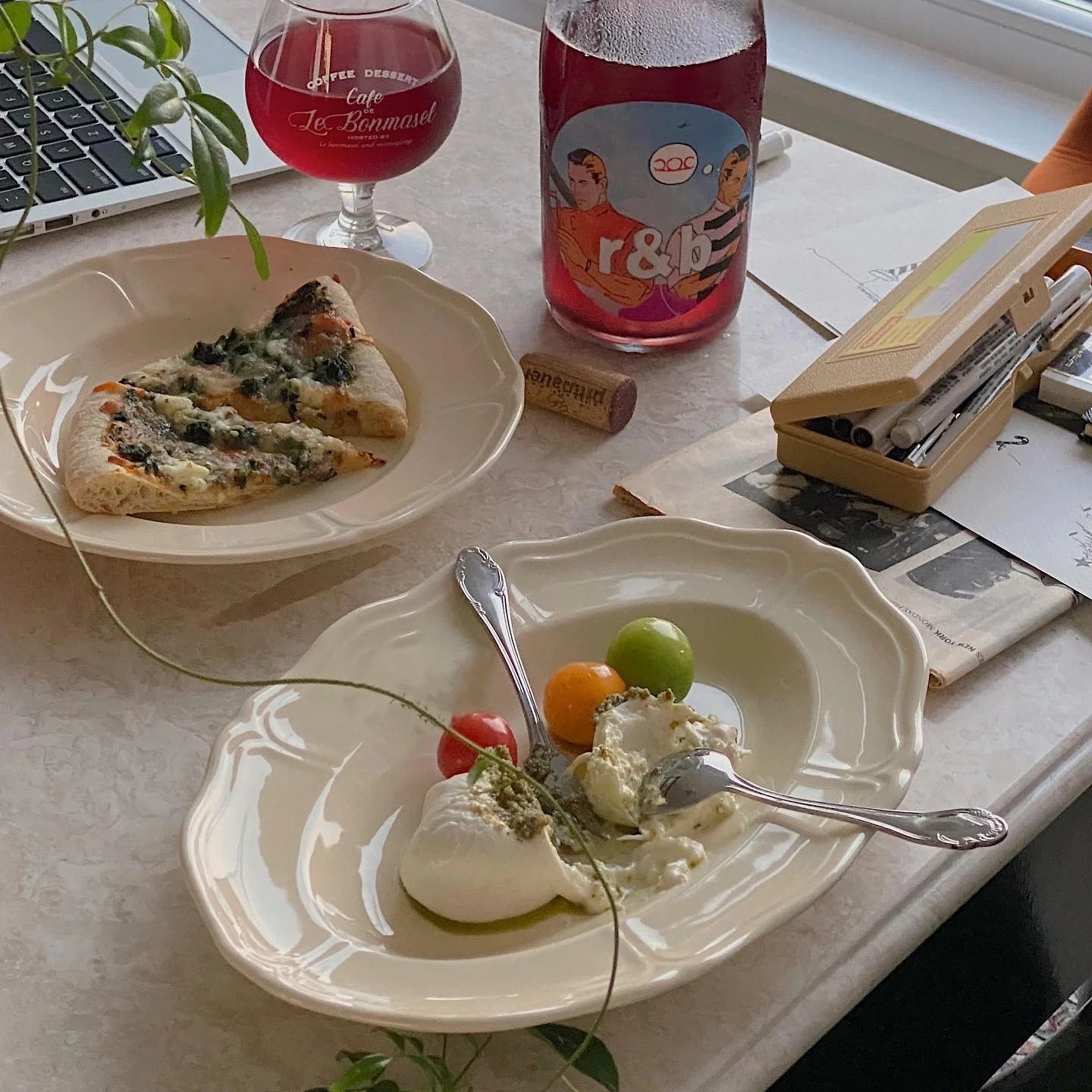 French Ins Style Western Dish Cream Colored Ceramic Western Plate Oval Retro Dessert Cake Plate High Aesthetic Breakfast Dish